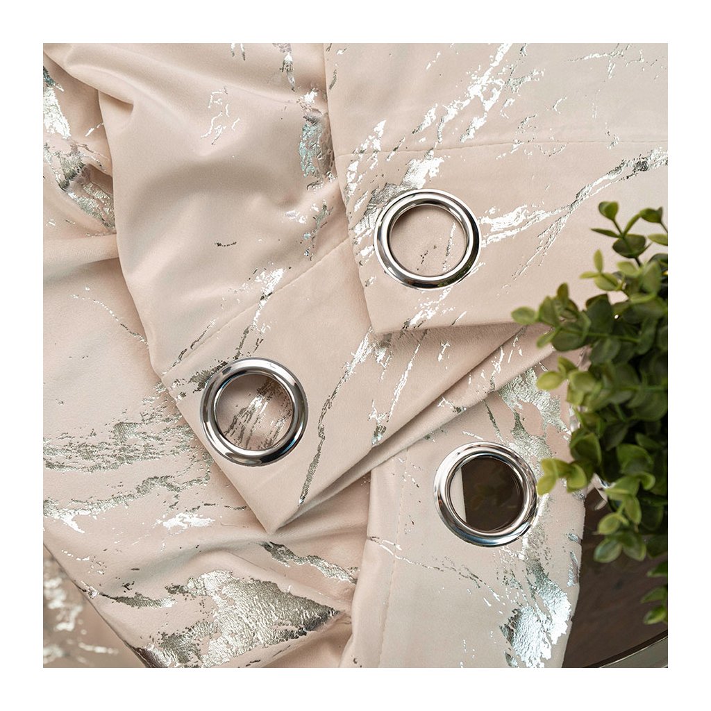 Krémový sametový závěs se stříbrným potiskem na kroužcích MARMA 140x250 cm