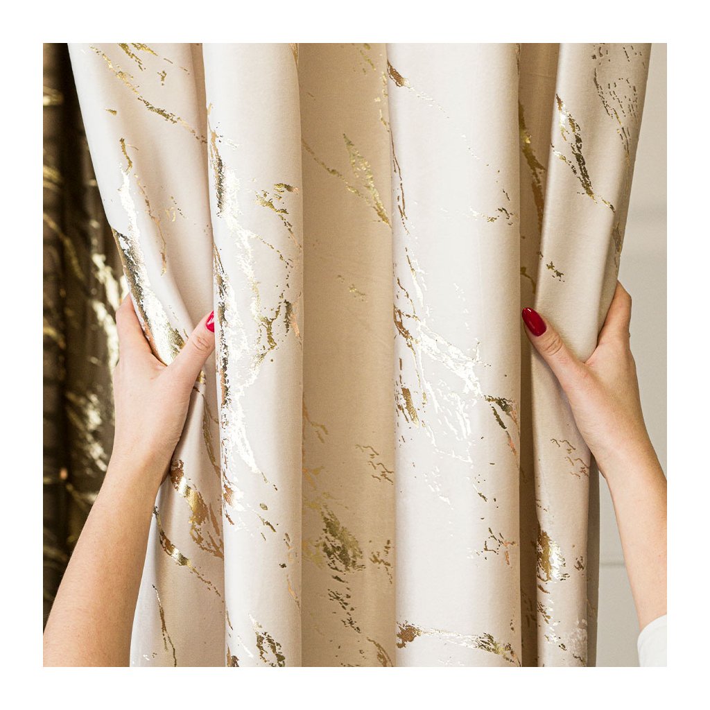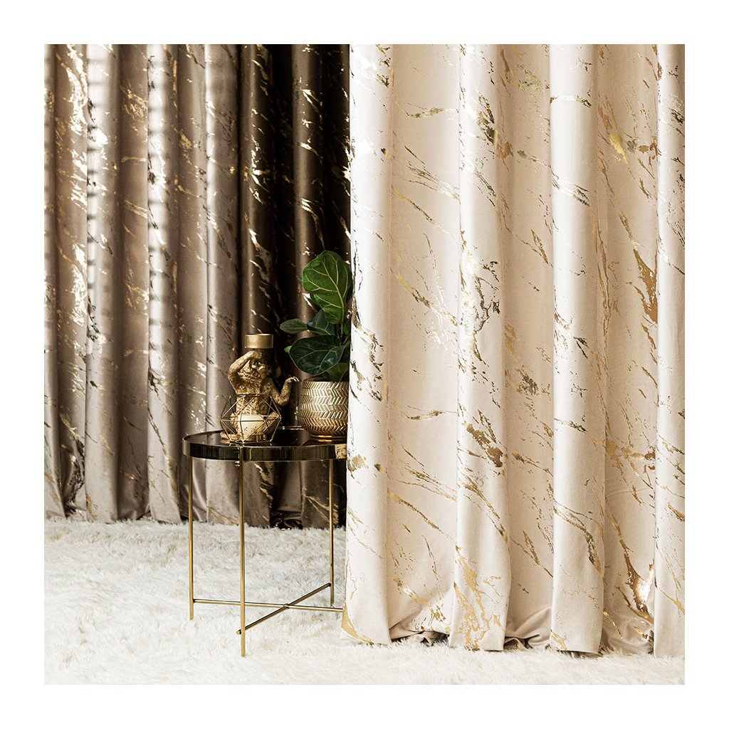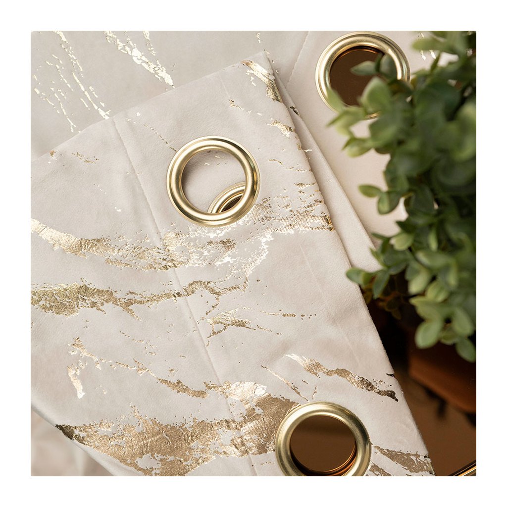 Krémový sametový závěs se zlatým potiskem na kroužcích MARMA 140x250 cm