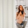 Krémový závěs SANDI se vyznačuje neobvyklou sametovou látkou s drobnými uzlíky připomínajícími buklovou vazbu. Závěs v eko stylu vytváří příjemnou atmosféru, jednobarevná látka s malými, světlejšími uzlíky dokonale zdůrazňuje interiér v ekologickém stylu. Měkká a jemná sametová tkanina vytváří efekt jemných a pravidelných vln, které nádherně splývají až k zemi. Použití praktických kovových kroužků vám zaručí rychlou a snadnou výměnu závěsu. Nečekejte a dodejte svému interiéru neobvyklý vzhled!