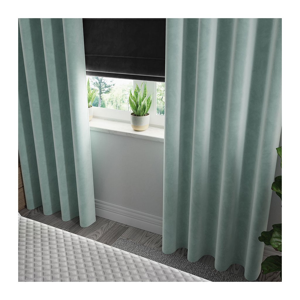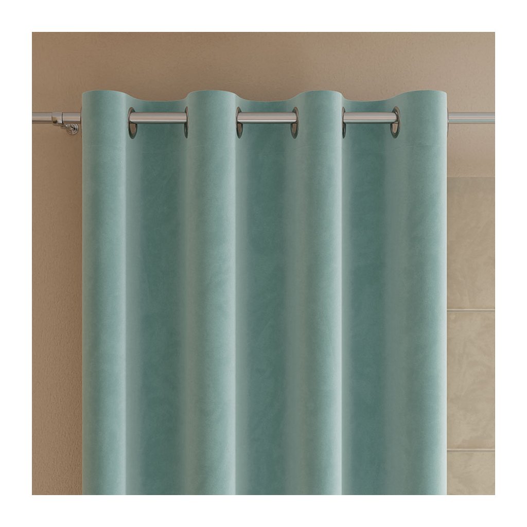 Mátový zatemňovací sametový závěs na kroužcích VELVI 140x240