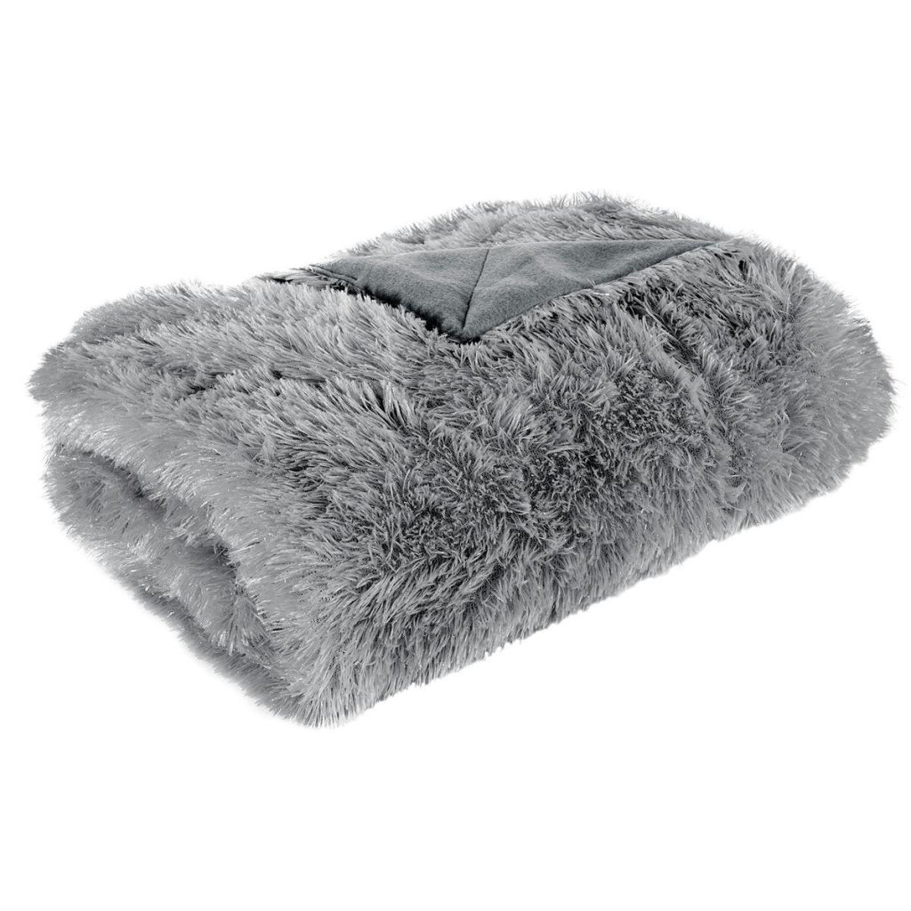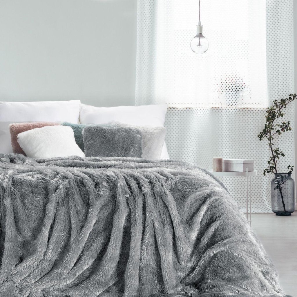 Měkká huňatá šedá deka TIFFANY 200x220 cm