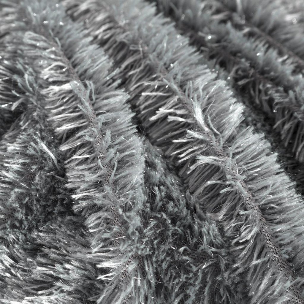 Jemná a huňatá deka šedé barvy zpestřená přidáním stříbrné nitě. Mimořádně měkká a teplá deka, perfektní i jako přehoz na postel.