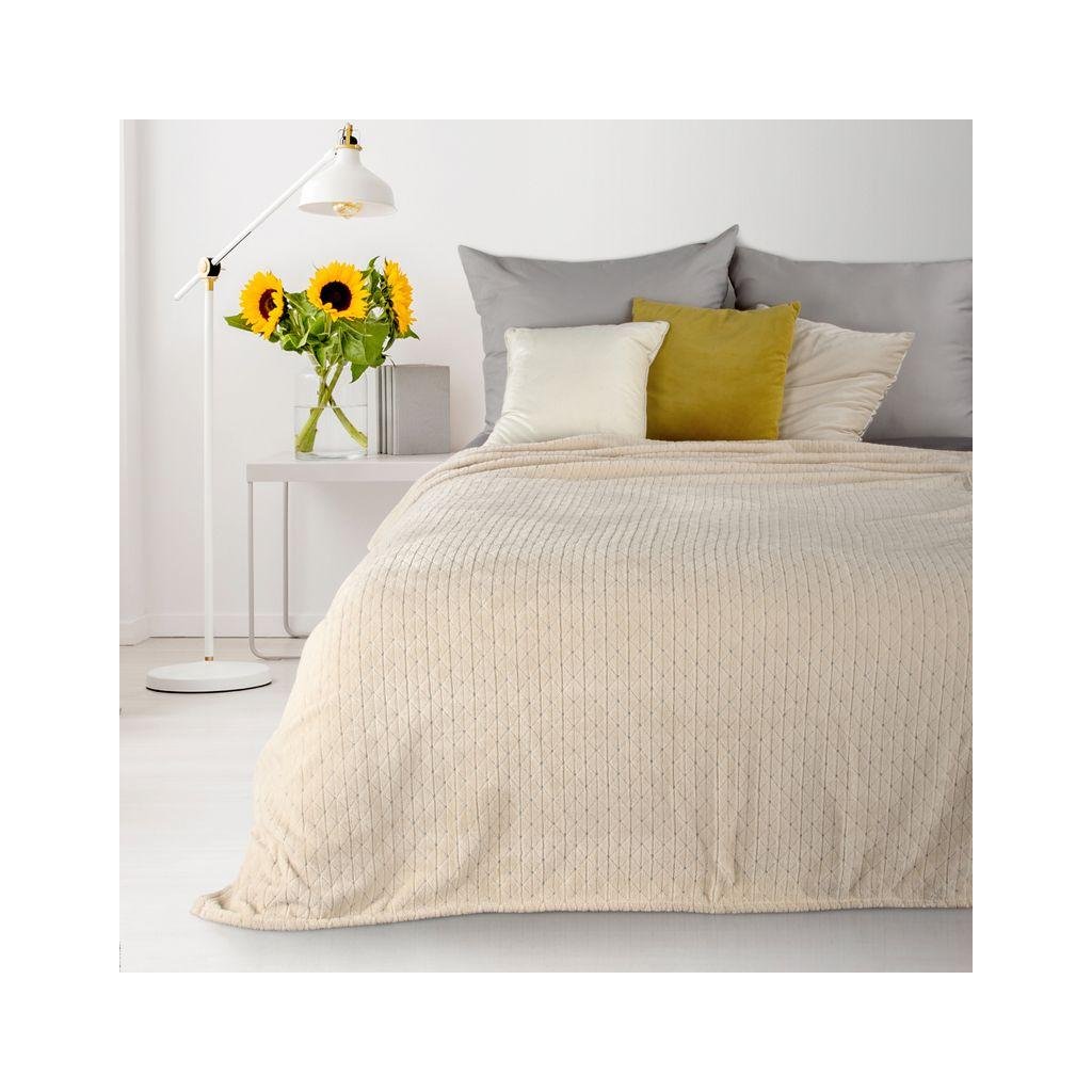 Měkká a na dotek velmi jemná béžová deka CINDY4 s decentním 3D geometrickým efektem. Šířka: 170 cm, délka: 210 cm, barva: béžová, Gramáž: 250 g / m2, Složení: 100% polyester