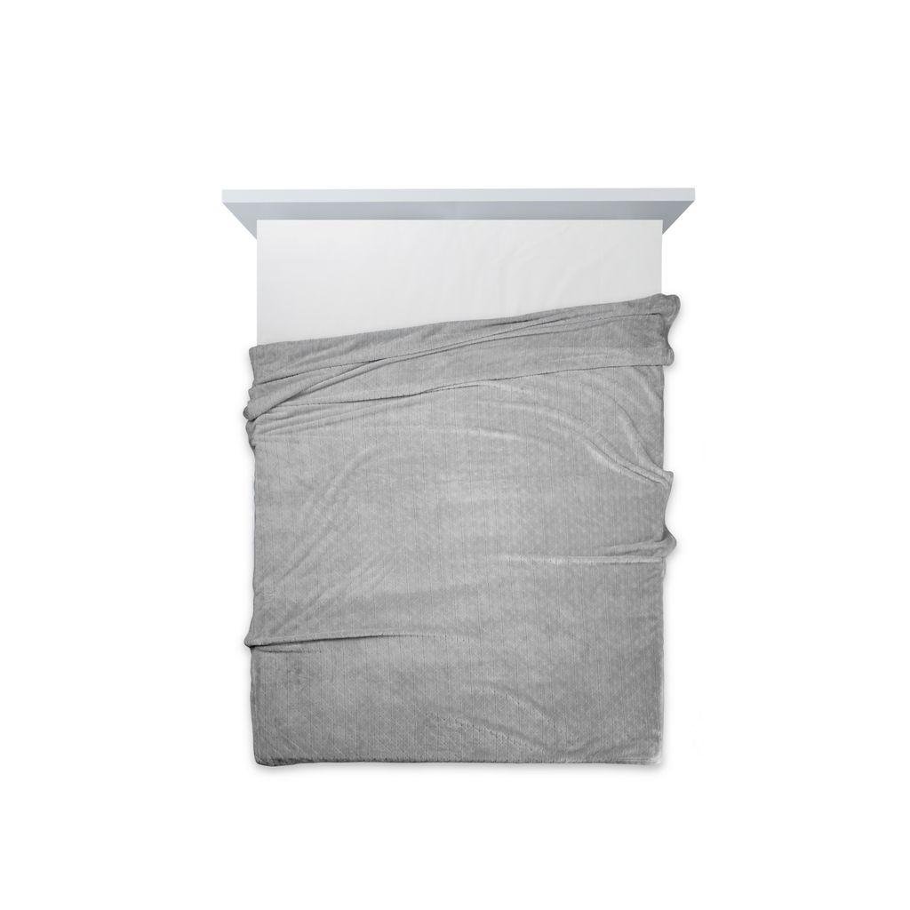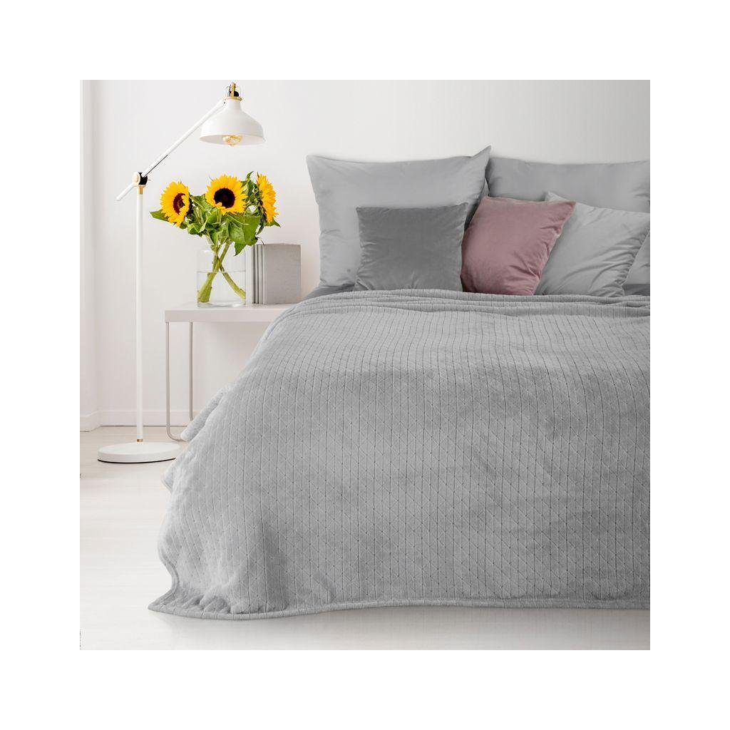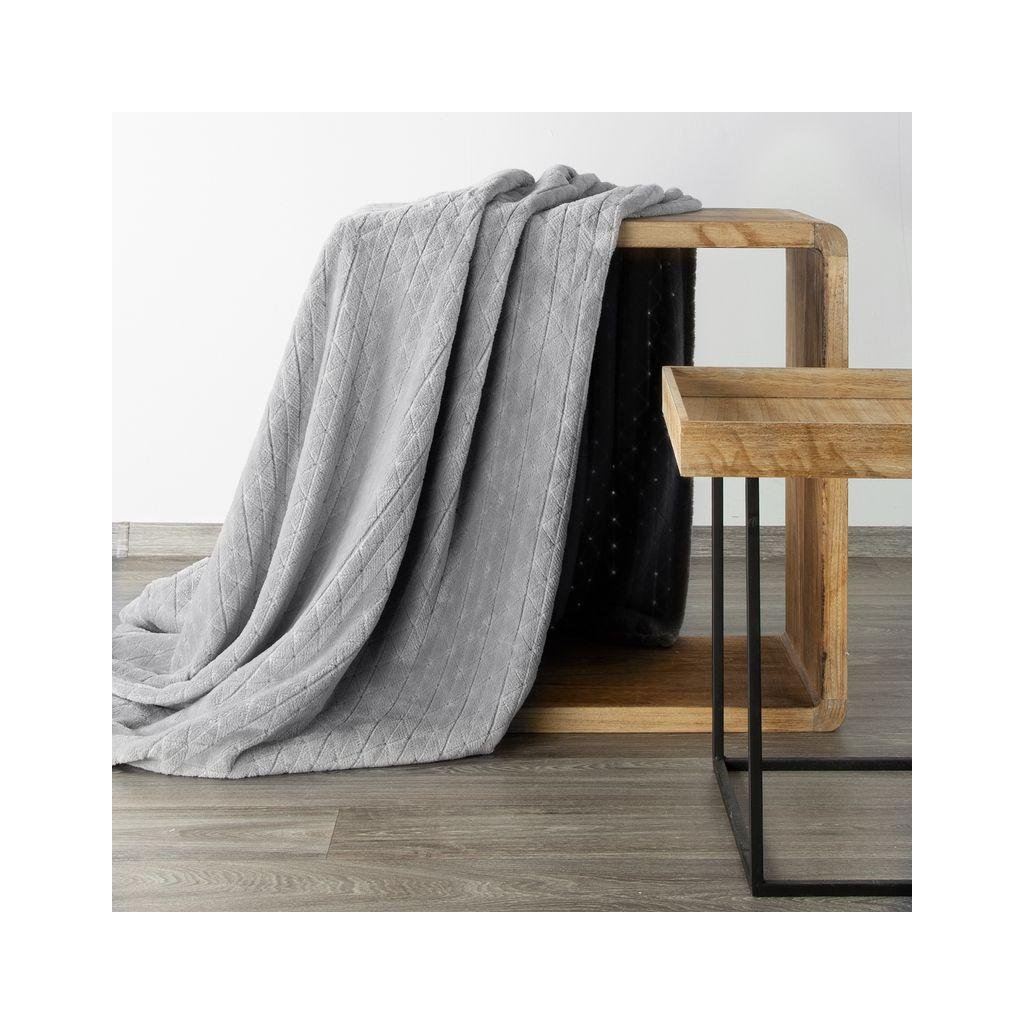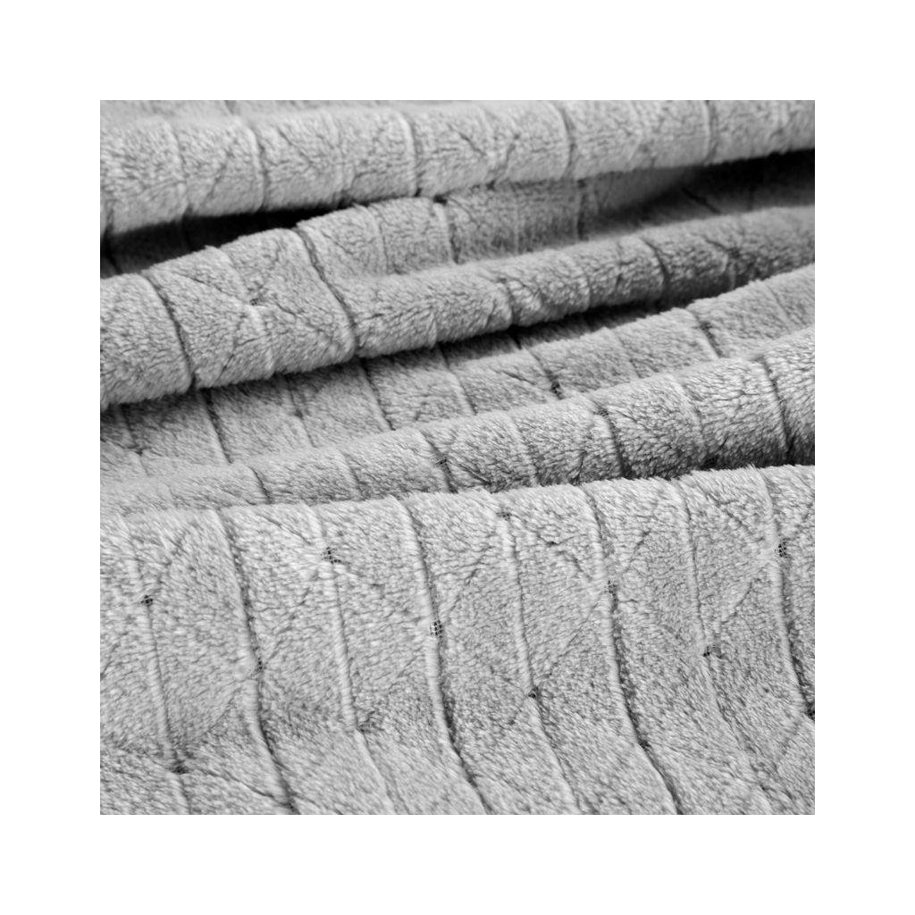 Měkká a na dotek velmi jemná stříbrná deka CINDY4 s decentním 3D geometrickým efektem. Šířka: 220 cm, délka: 200 cm, barva: stříbrná, Gramáž: 250 g / m2, Složení: 100% polyester