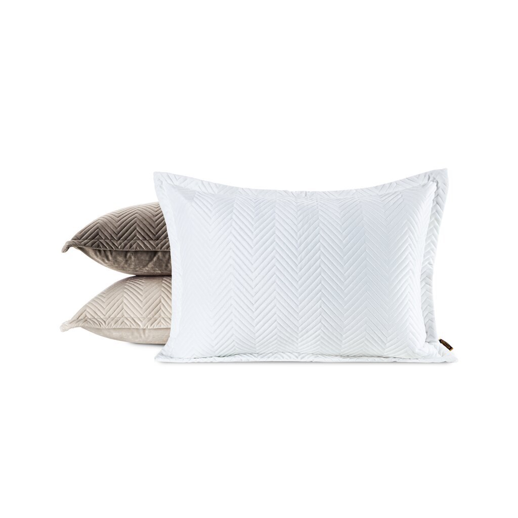 Dekorativní povlečení SIMONA z jemné sametové tkaniny přinese do vaší ložnice dávku elegance a moderního stylu. Její povrch je prošíván bezešvou technikou do geometrického vzoru , který dodává prostoru strukturu a vizuální zájem.