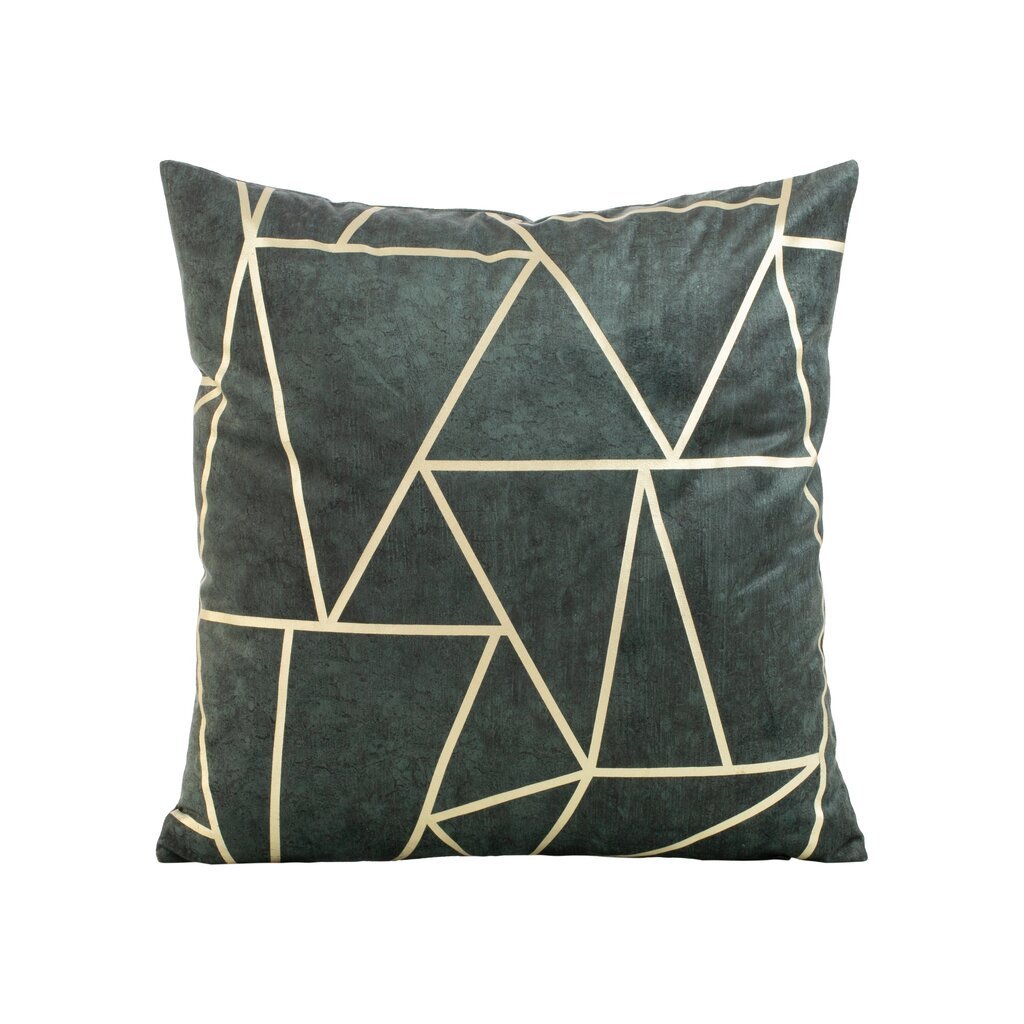 Mentolový sametový povlak na polštář se zlatým geometrickým potiskem MOLY 45x45 cm