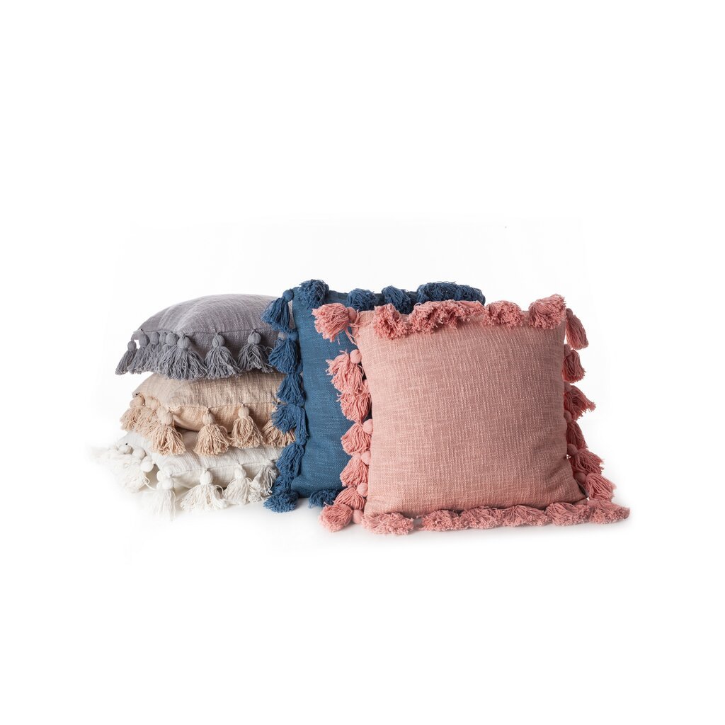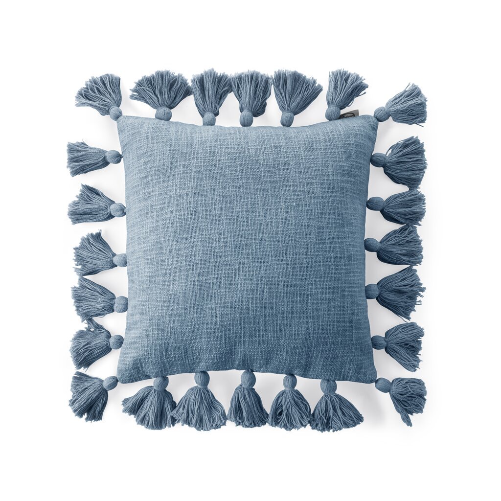Modré povlak na polštář z hrubé bavlněné látky s třásněmi po stranách ASTI 45x45 cm
