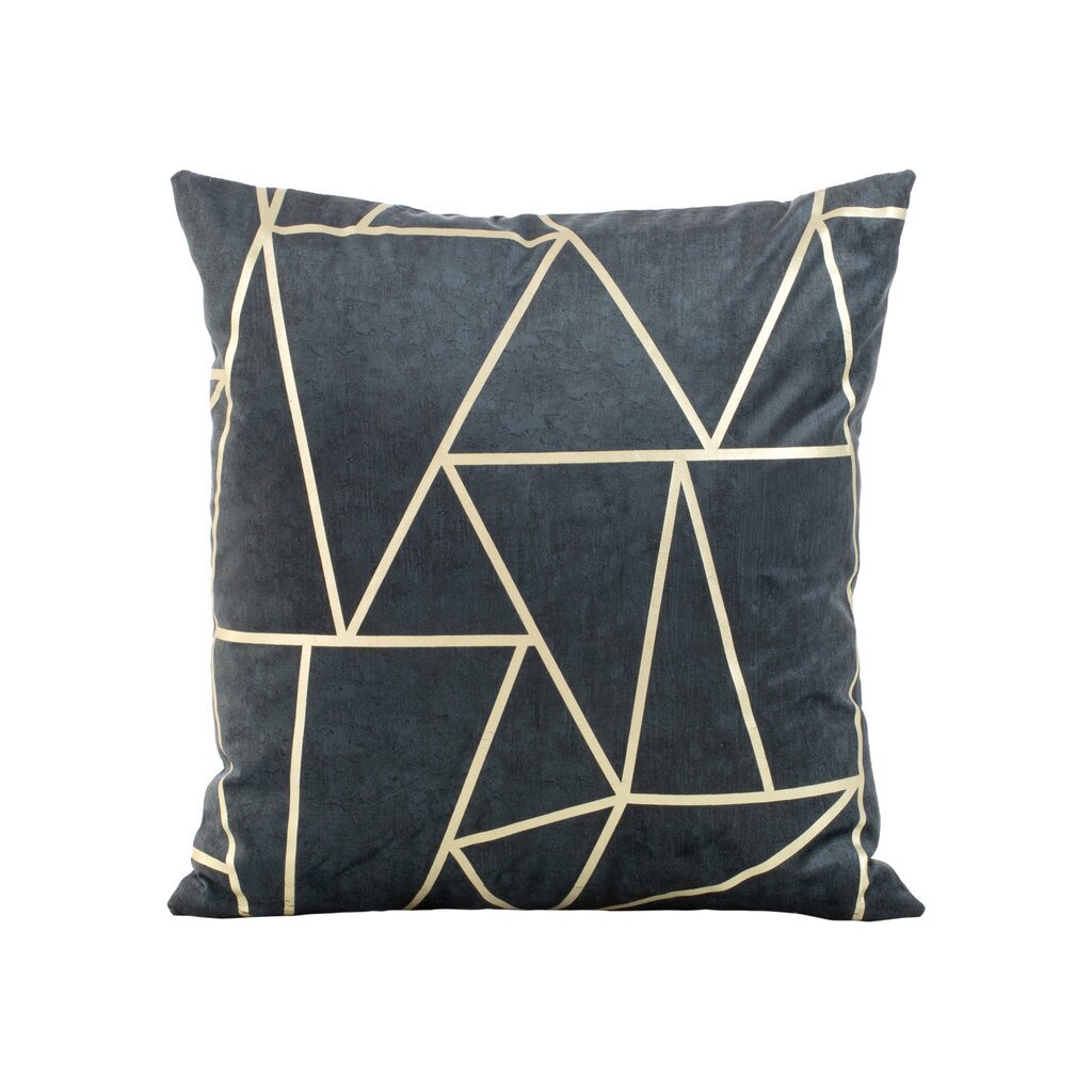 Modré sametové povlečení na polštář se zlatým geometrickým potiskem MOLY 45x45 cm