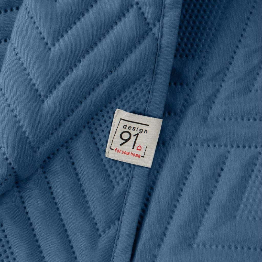Přehoz na postel ALARA1 modré barvy s geometrickým vzorem vyraženým metodou hotpress. Lze prát v pračce. 220x240 cm