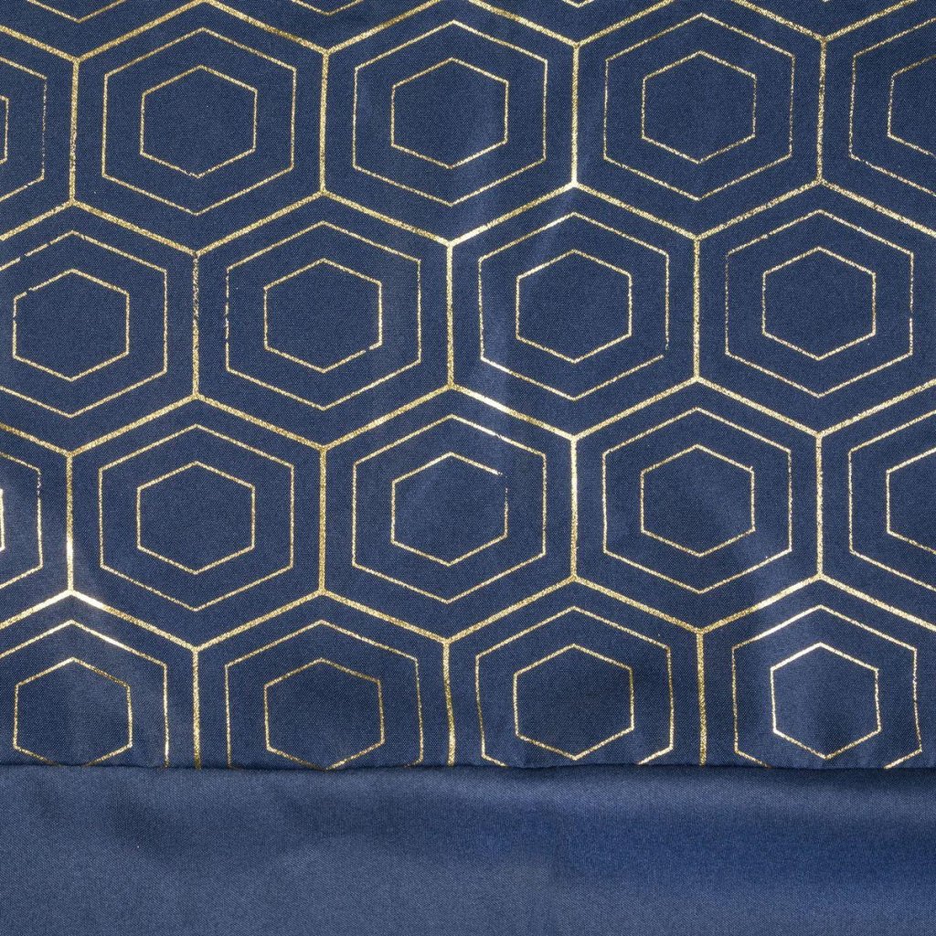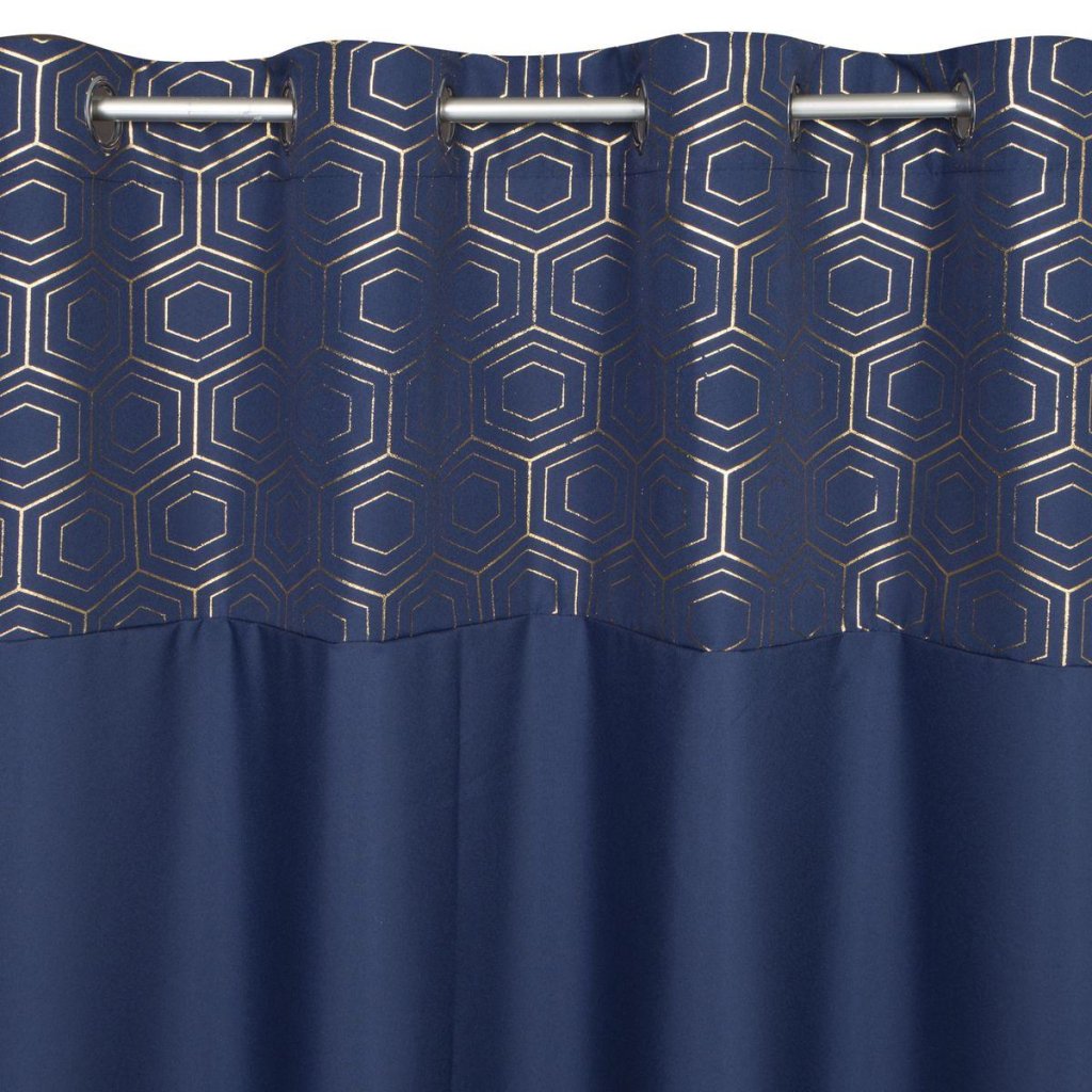 Modrý závěs DAFNE s geometrickou zlatým potiskem 140x250 cm