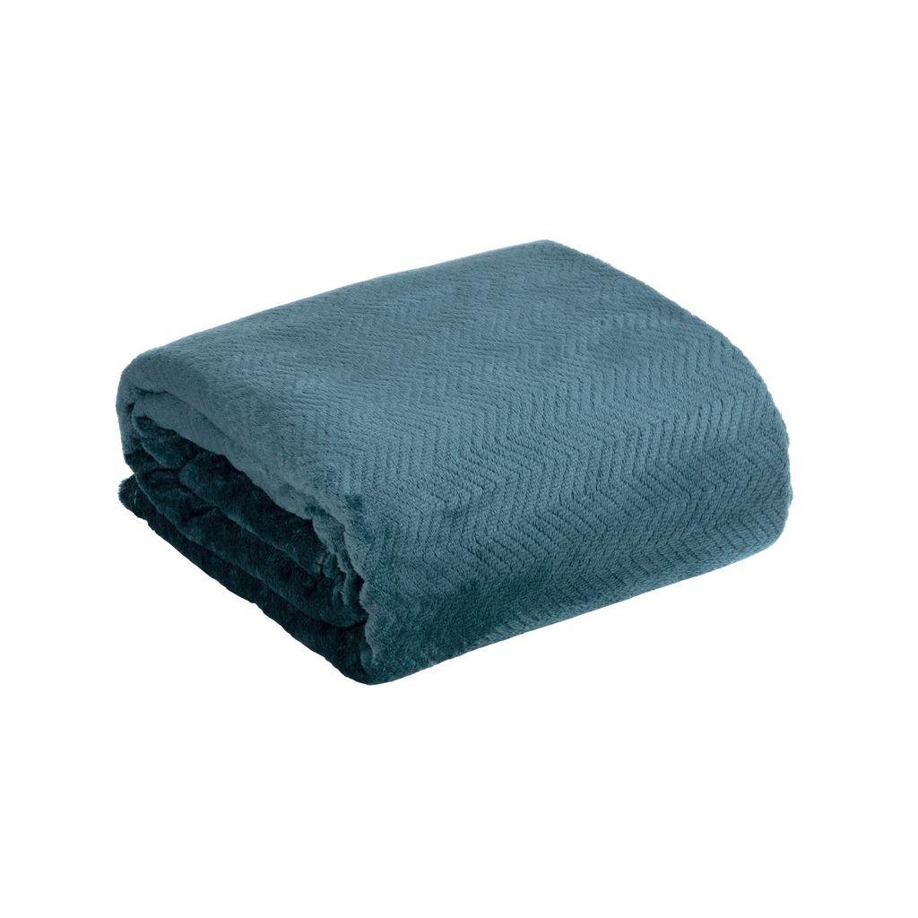 Měkká a na dotek velmi příjemná námořnicky modrá flano deka CINDY5 zdobená vzorem rybí kosti s 3D efektem. Deka je nádhernou dekorací i ideálním doplňkem poskytujícím teplo a pocit pohodlí. Šířka: 170 cm, délka: 210 cm. Gramáž: 250 g/m2. Složení: 100 polyester.