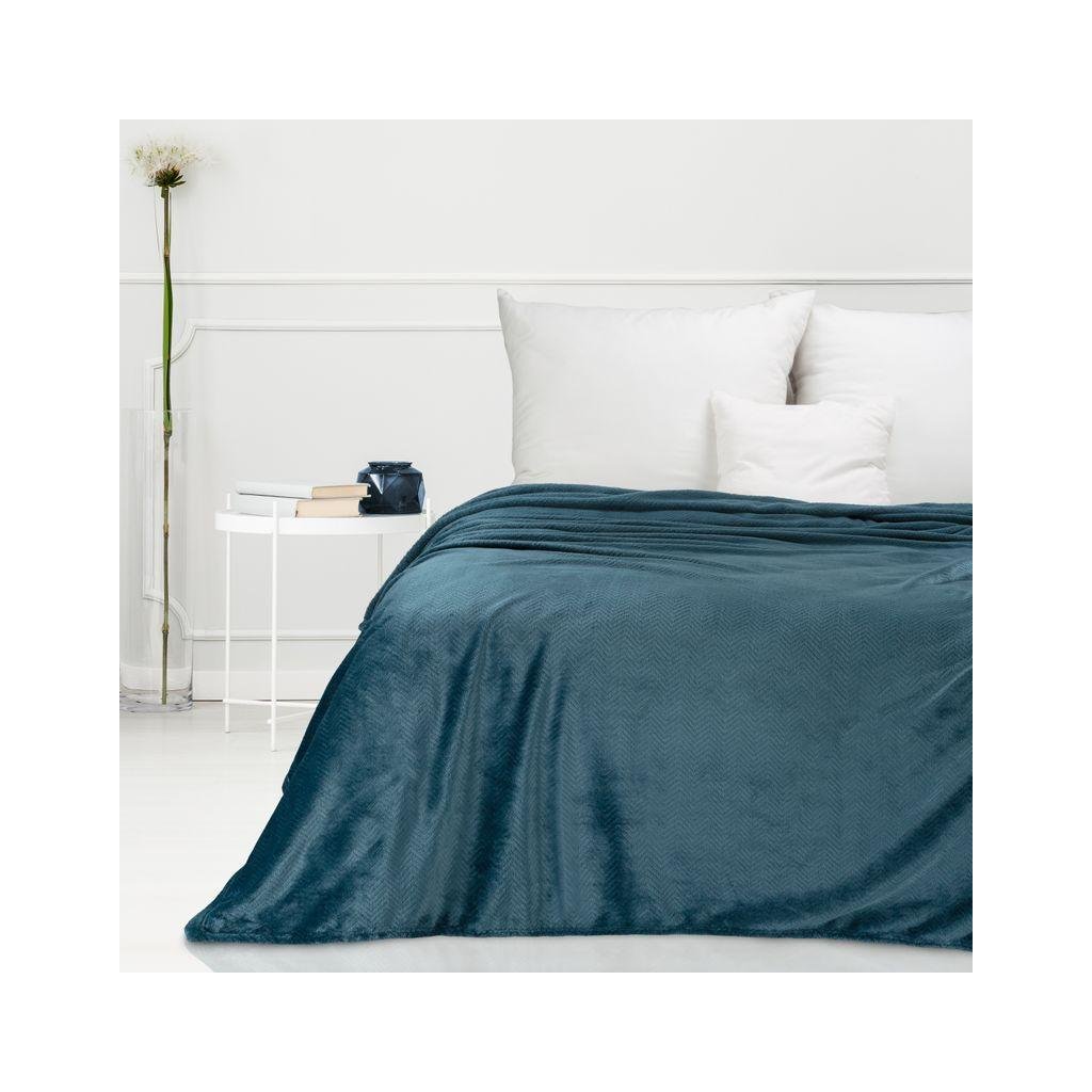 Nádherná námořnicky modrá deka CINDY5 s reliéfním vzorem rybí kosti krásně ozdobí váš obývací pokoj nebo ložnici. Extrémně jemná a na dotek příjemná látka, ze které je deka ušita, vám umožní mazlit se s ní každý večer.