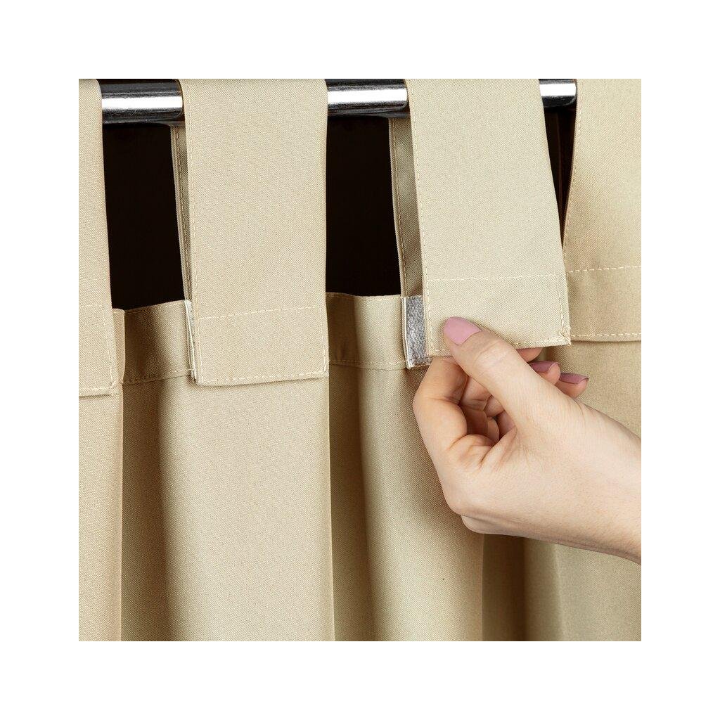 Zahradní závěs na terasu nebo do altánku z nepromokavé látky s poutky zapínanými na suchý zip . Závěs je voděodolný . Šířka: 155 cm, délka: 220 cm, barva: béžová, gramáž: 180 g/m2, materiál: 100% polyester