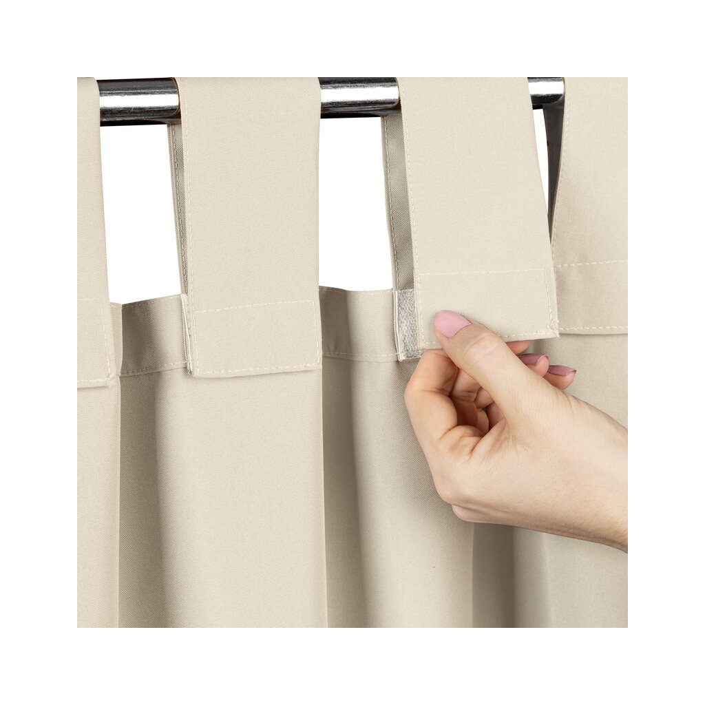Zahradní závěs na terasu nebo do altánku z nepromokavé látky s poutky zapínanými na suchý zip . Závěs je voděodolný . Šířka: 155 cm, délka: 260 cm, barva: béžová, gramáž: 180 g/m2, materiál: 100% polyester