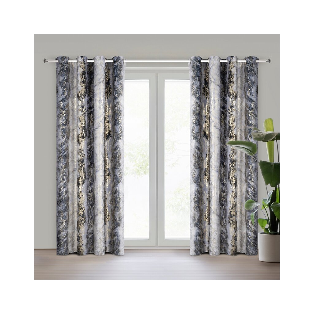Ocelový sametový závěs se zlatým lesklým potiskem na kroužcích SOFI 135x250 cm