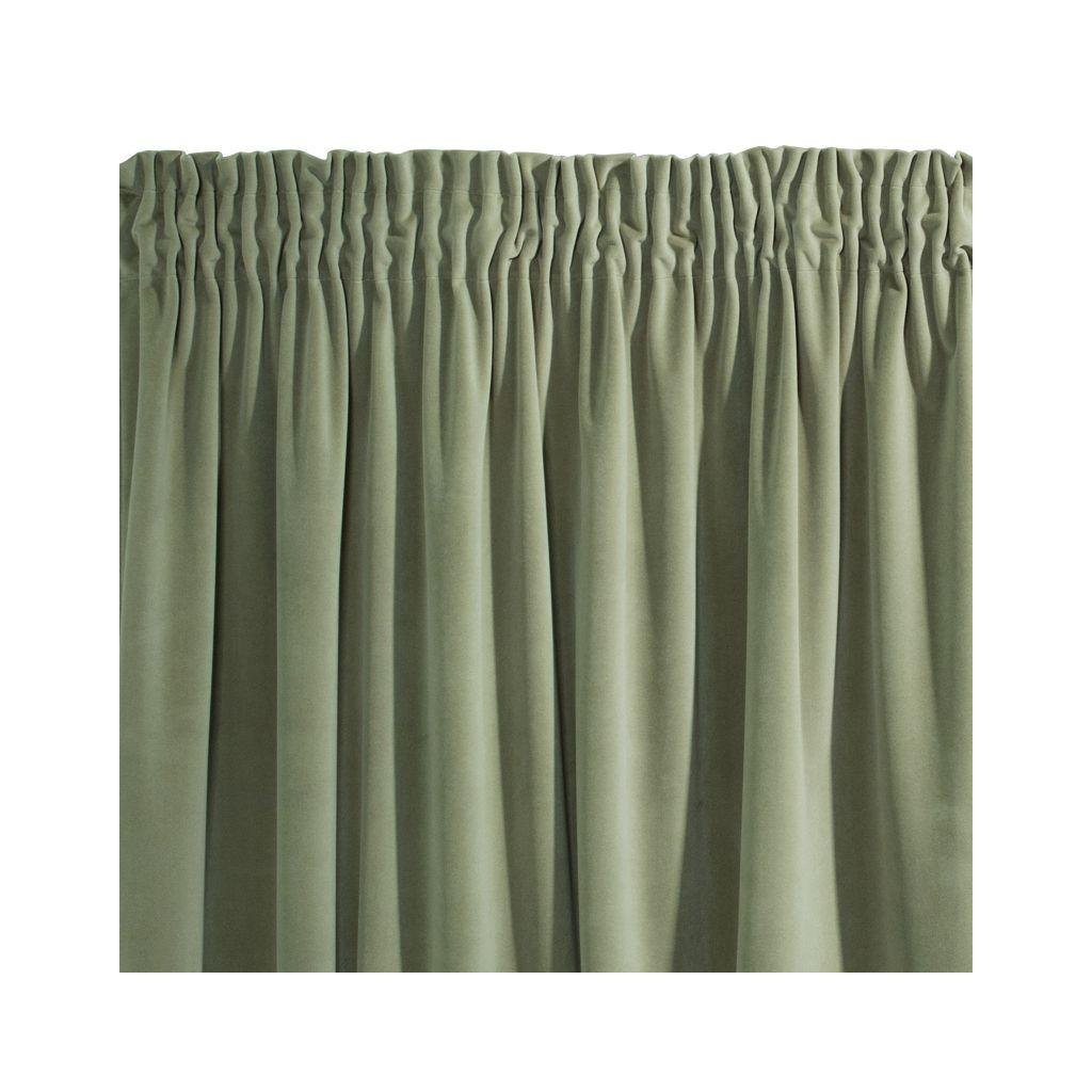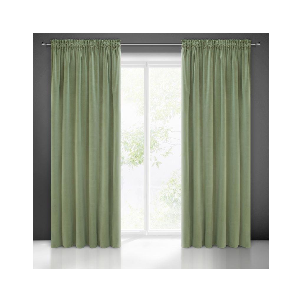 Sametový závěs olivové barvy. Masivní látka poskytuje vysoký stupeň vnitřního zatemnění. Šířka: 140 cm, délka: 270 cm. Složení: 100% polyester. Praktické zavěšení na řasící pásce.
