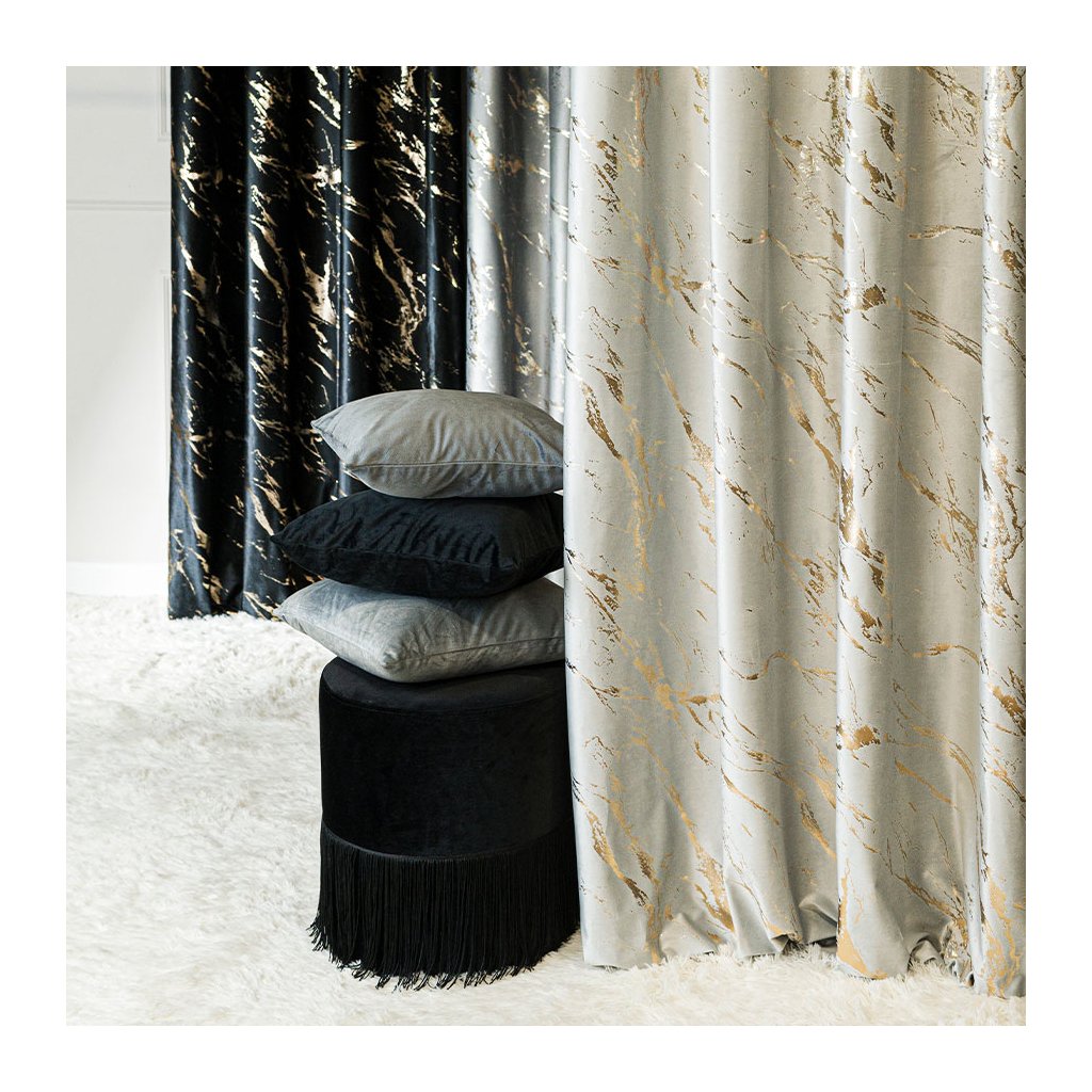Pastelově šedý sametový závěs MARMA se zlatým potiskem