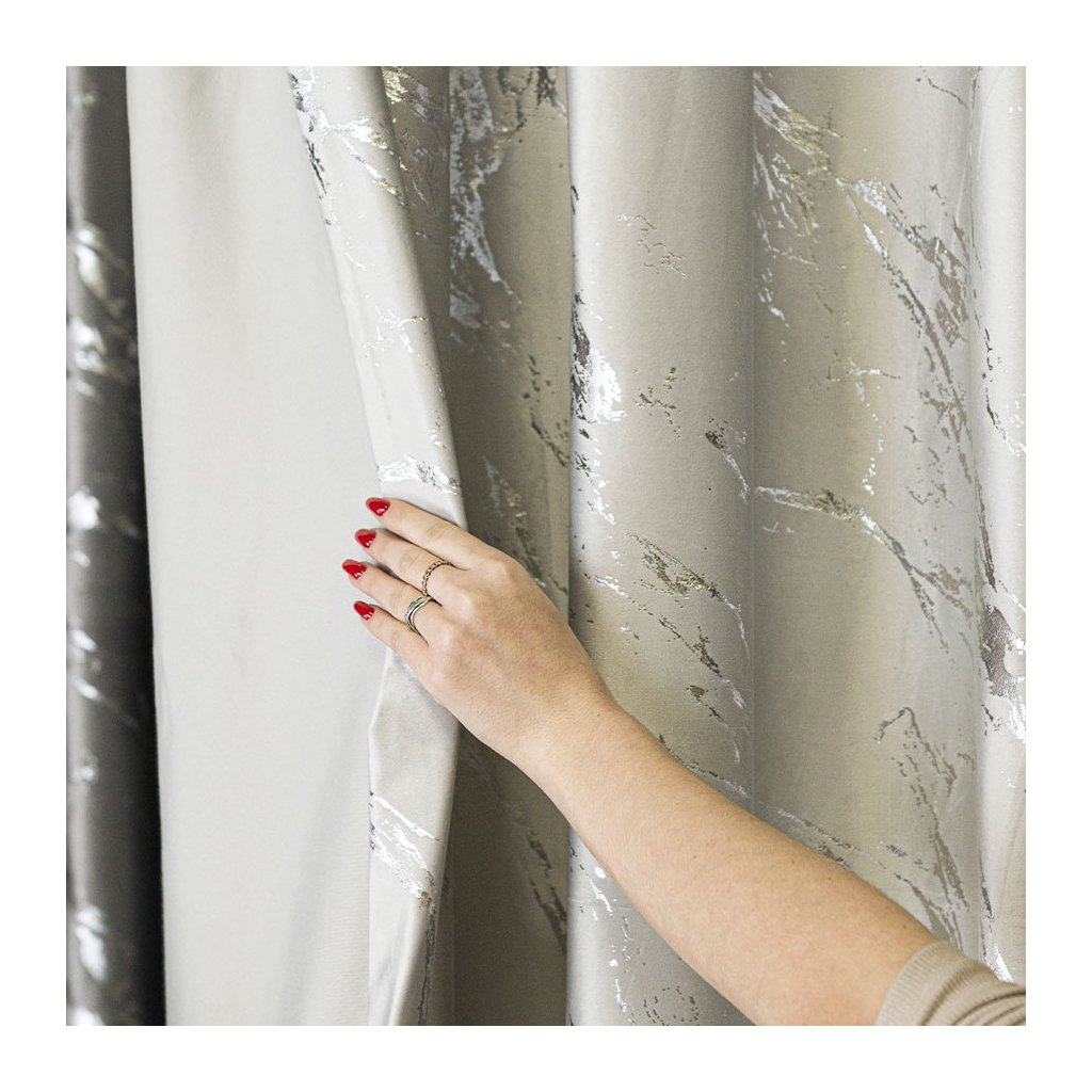 Luxusní sametový závěs MARMA s metalickým mramorovým potiskem propojí eleganci a moderní styl . Hustě tkaný samet krásně splývá, má jemný noblesní lesk a na okně vytváří galerijní efekt – výrazný, ale stále vkusný akcent.