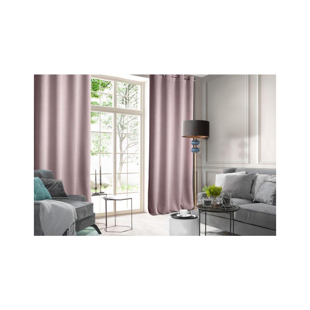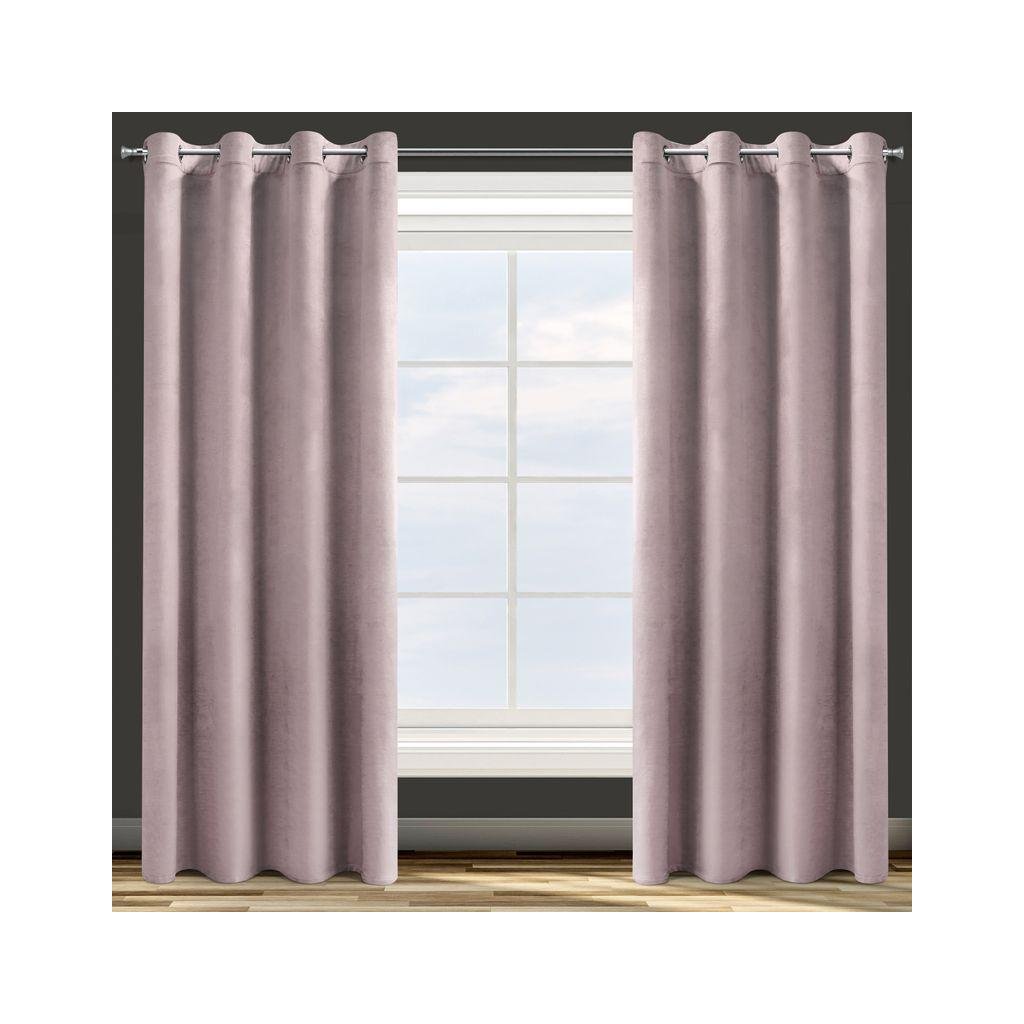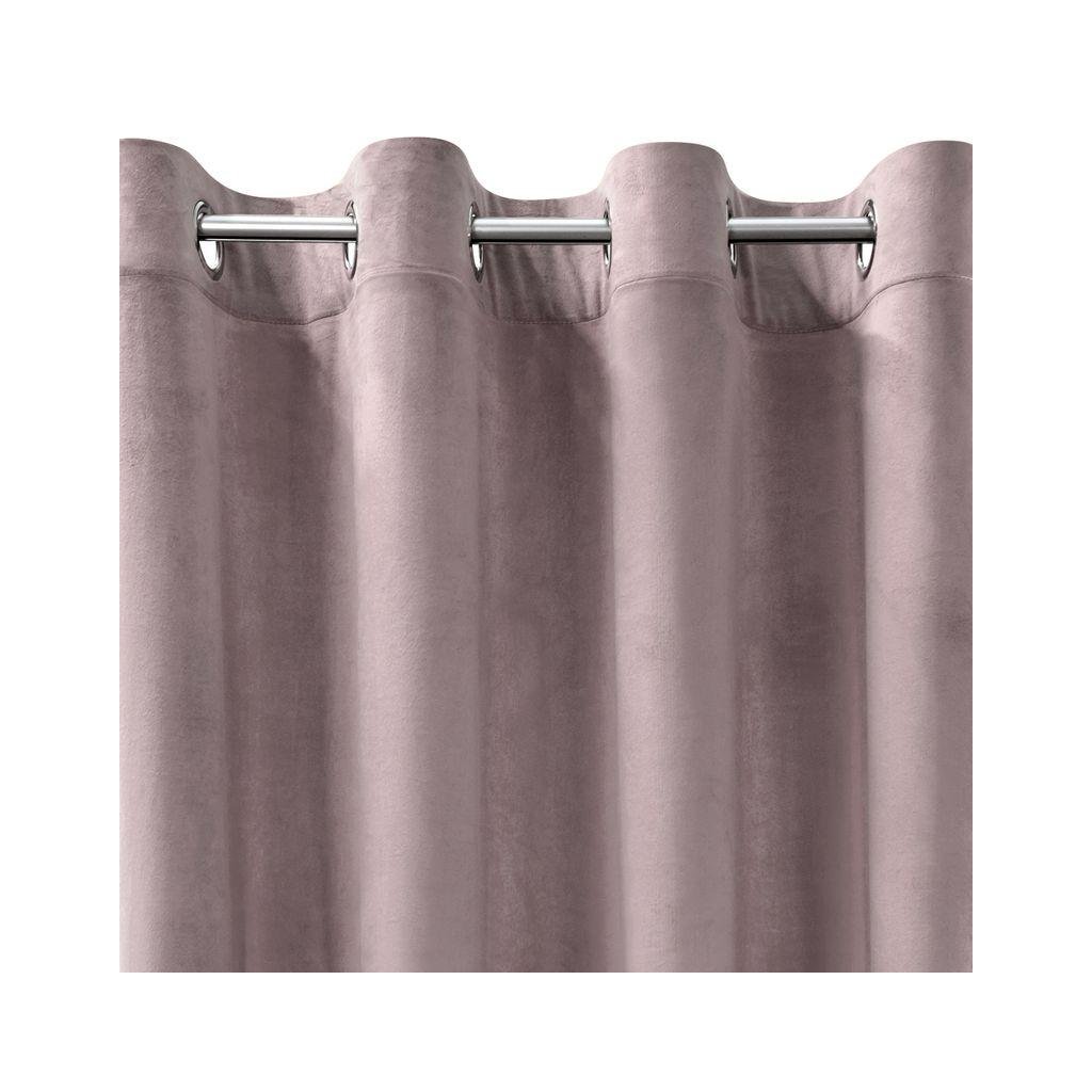 Sametový jednobarevný pudrový závěs . Sametová látka o hustotě 200g/m2 poskytuje střední stupeň vnitřního zatemnění . Šířka: 140 cm, délka: 250 cm. Složení: 100% polyester. Praktické zavěšení na kovových kroužcích .