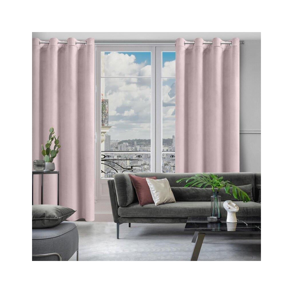 Pudrový sametový závěs na kroužcích ROSA 140x250 cm
