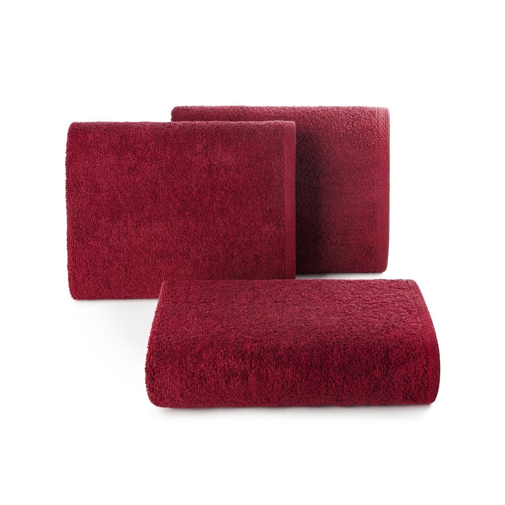 Jednokolorowy, gładki ręcznik kąpielowy z miękkiej tkaniny bawełniané o sploce frotte. Lekki, trwały i bardzo chłonny. Kolory odporně na częste praní. szerokość: 30 cm, długość: 50 cm, kolor: bordowy, Gramatura: 400 GSM, Skład: 100% bawełna