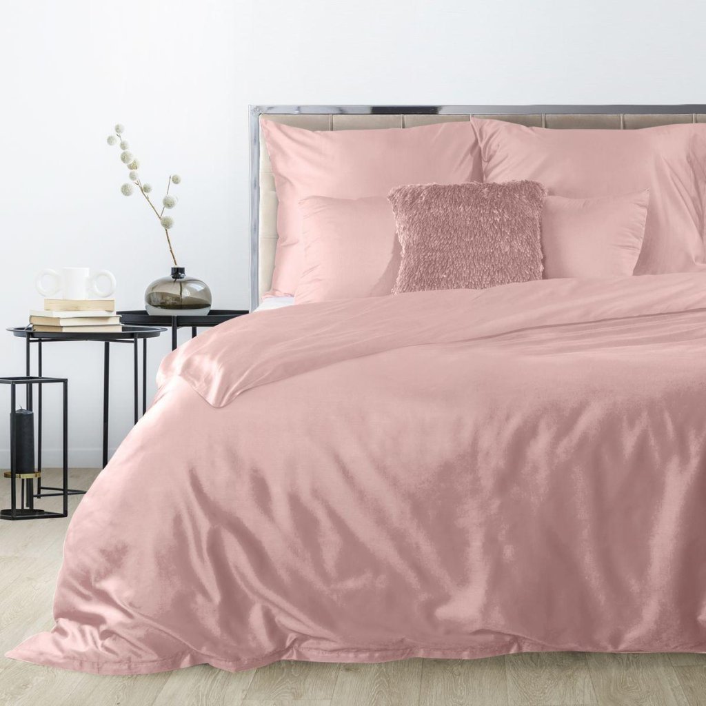 Růžové ložní povlečení DINA z vysoce kvalitního bavlněného saténu 140x200 cm, 70x80 cm