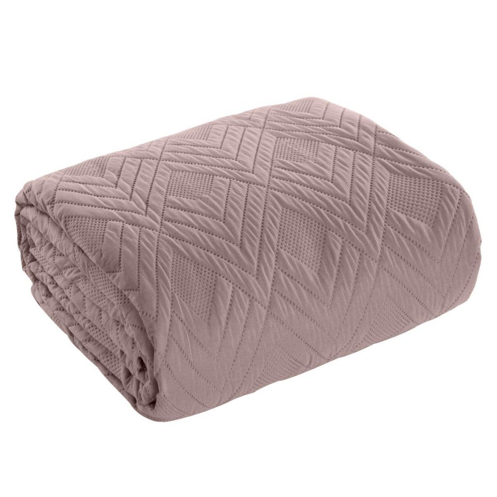 Přehoz na postel ALARA1 růžové barvy s geometrickým vzorem vyraženým metodou hotpress. Lze prát v pračce. 220x240 cm