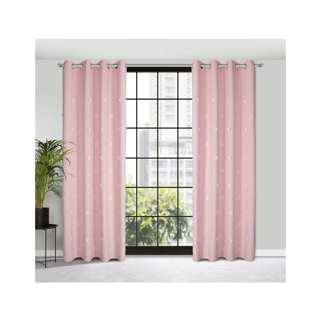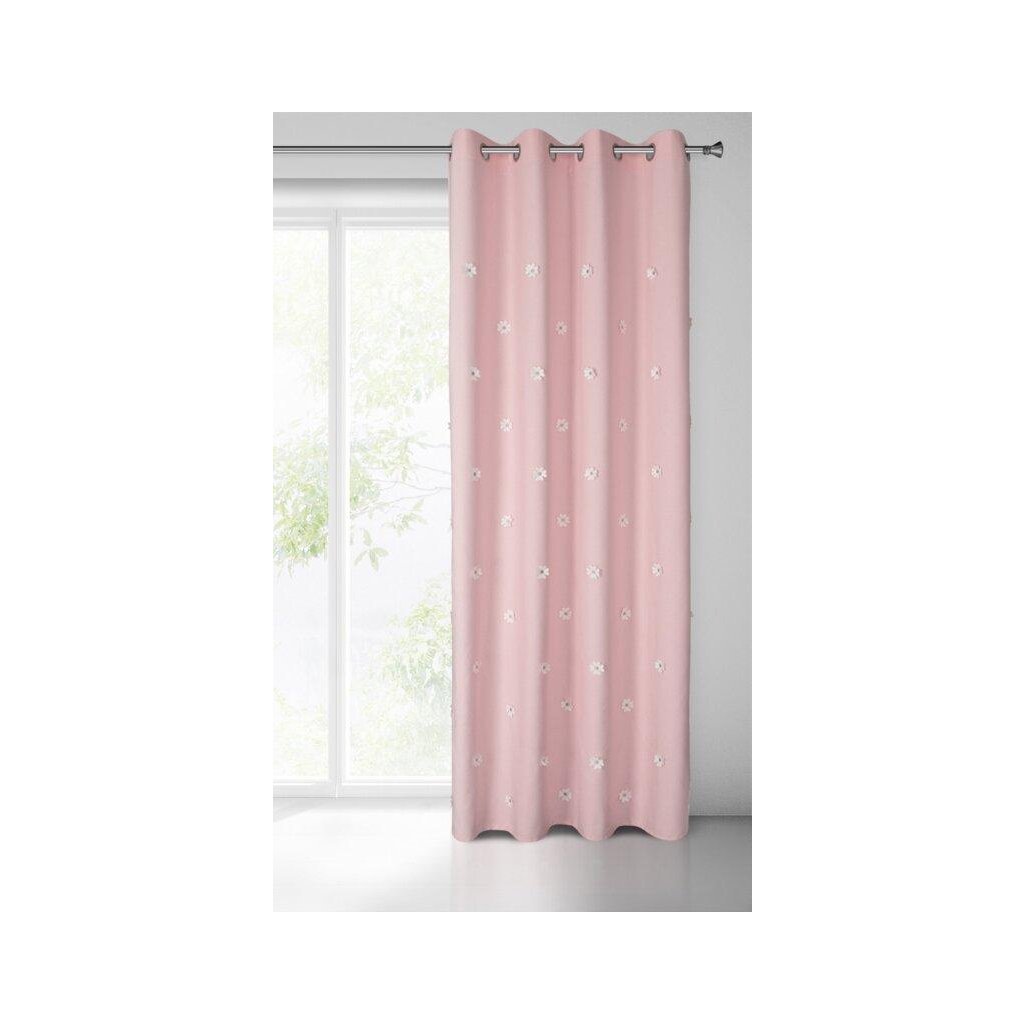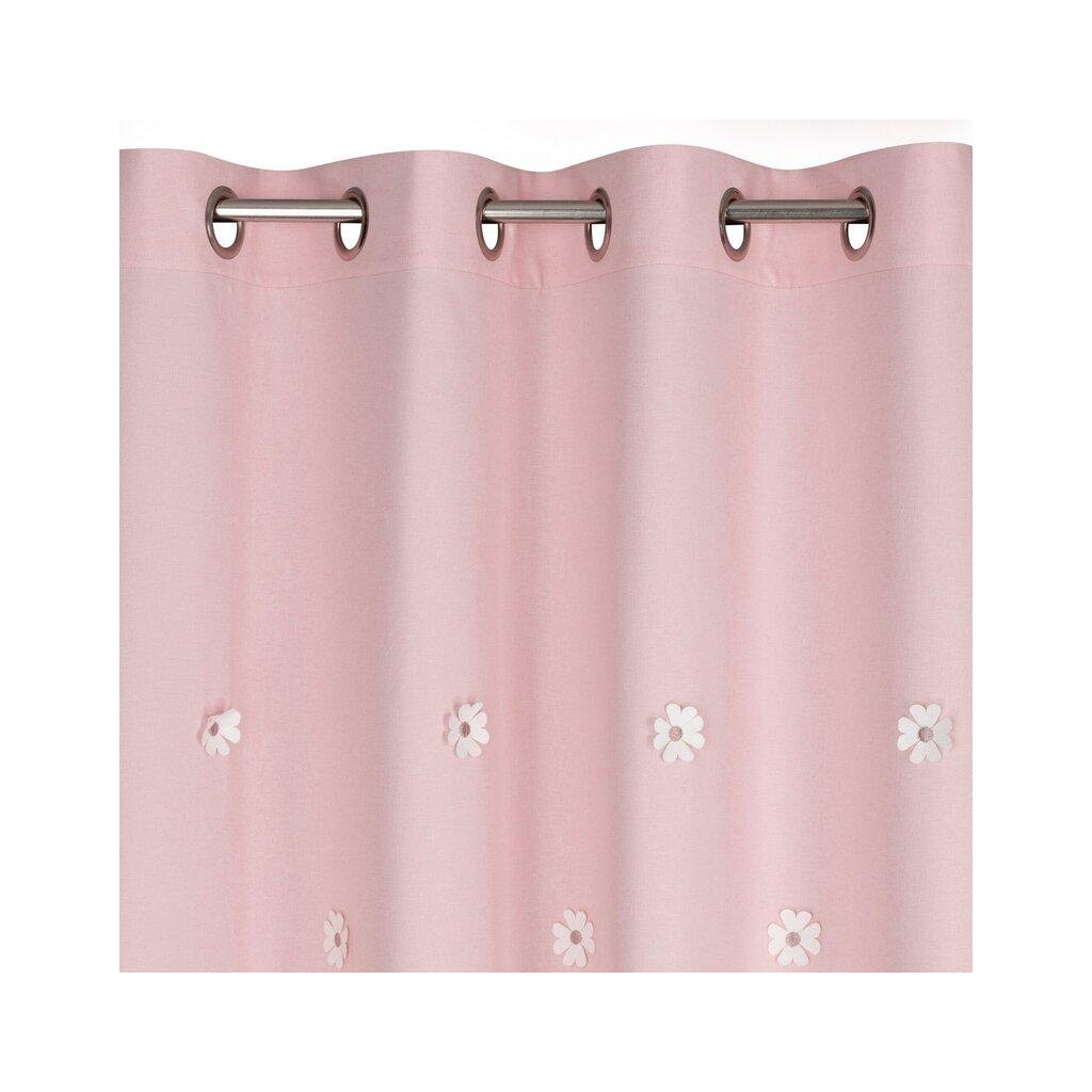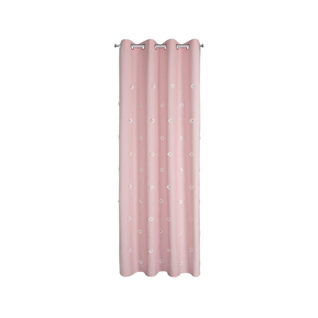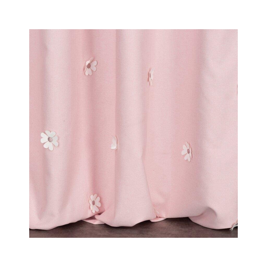 Růžový dívčí závěs ELSA s aplikací vyšívaných květin . Šířka: 140 cm, výška: 250 cm, Barva: růžová. Materiál: 100% polyester. Gramáž: 200g/m2. Praktické zavěšení na 8 kovových kroužků o vnitřním průměru 4cm.