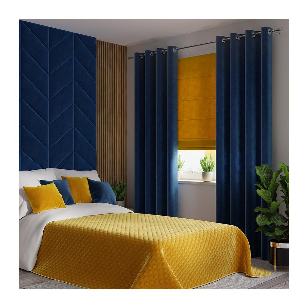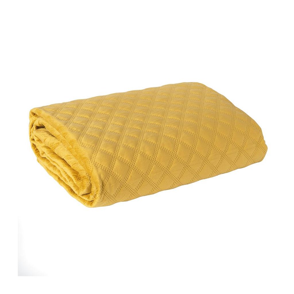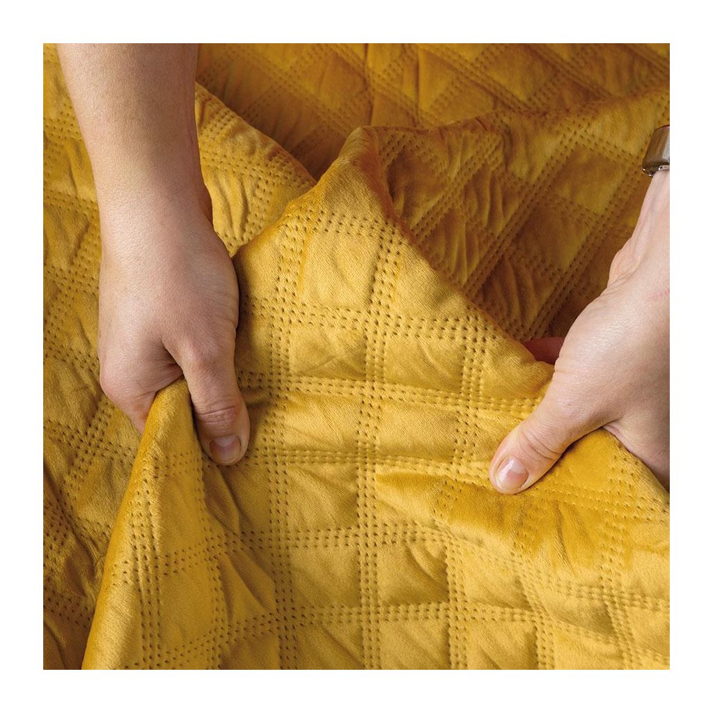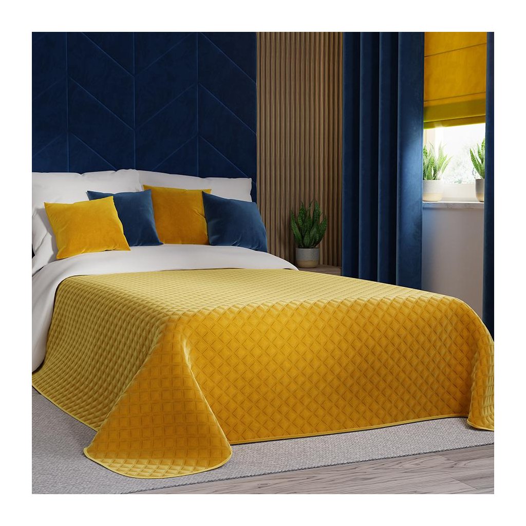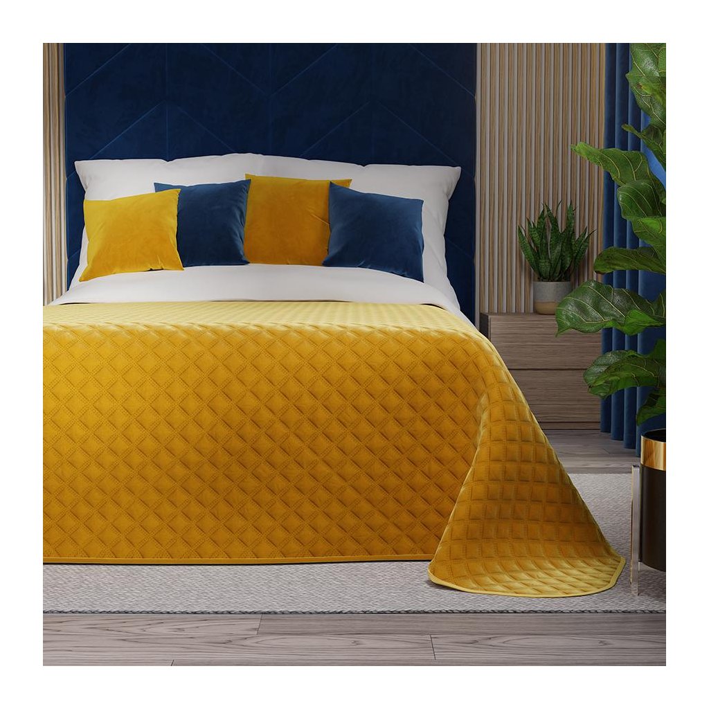 Šafránově žlutý sametový přehoz na postel VELVI 220x240 cm