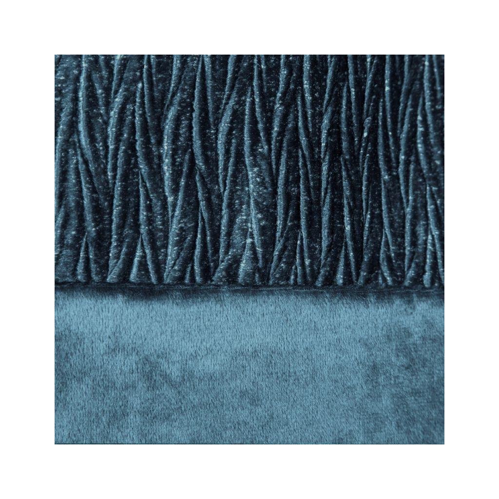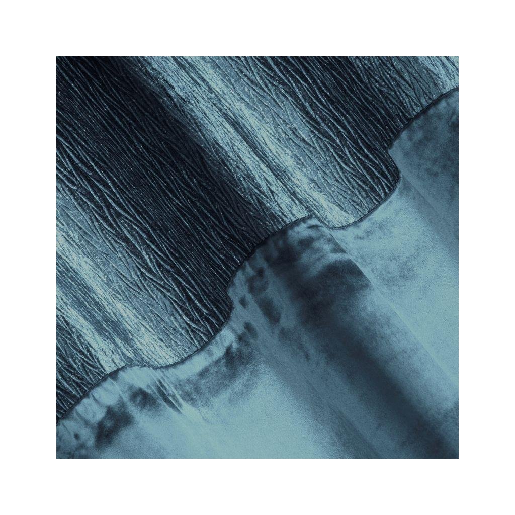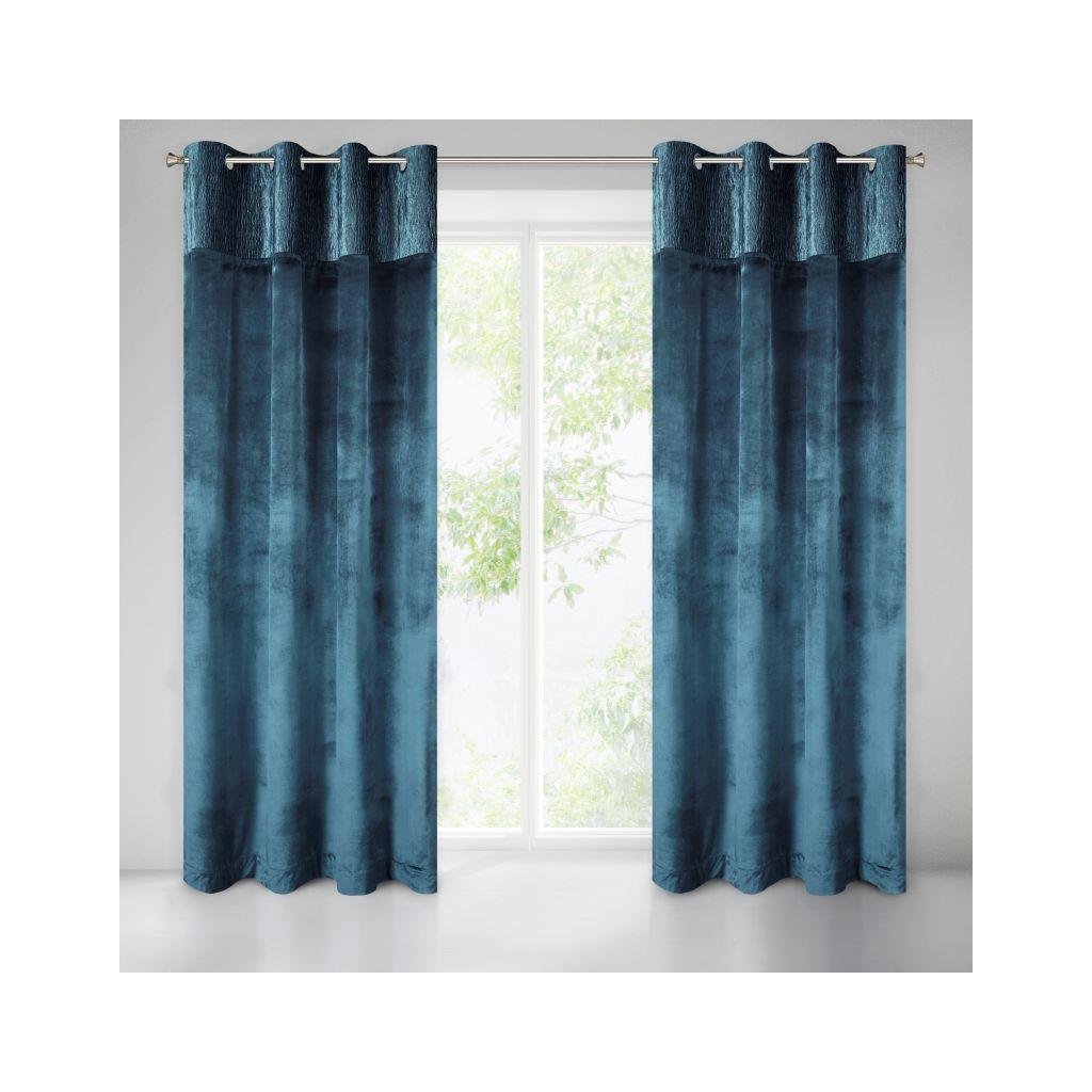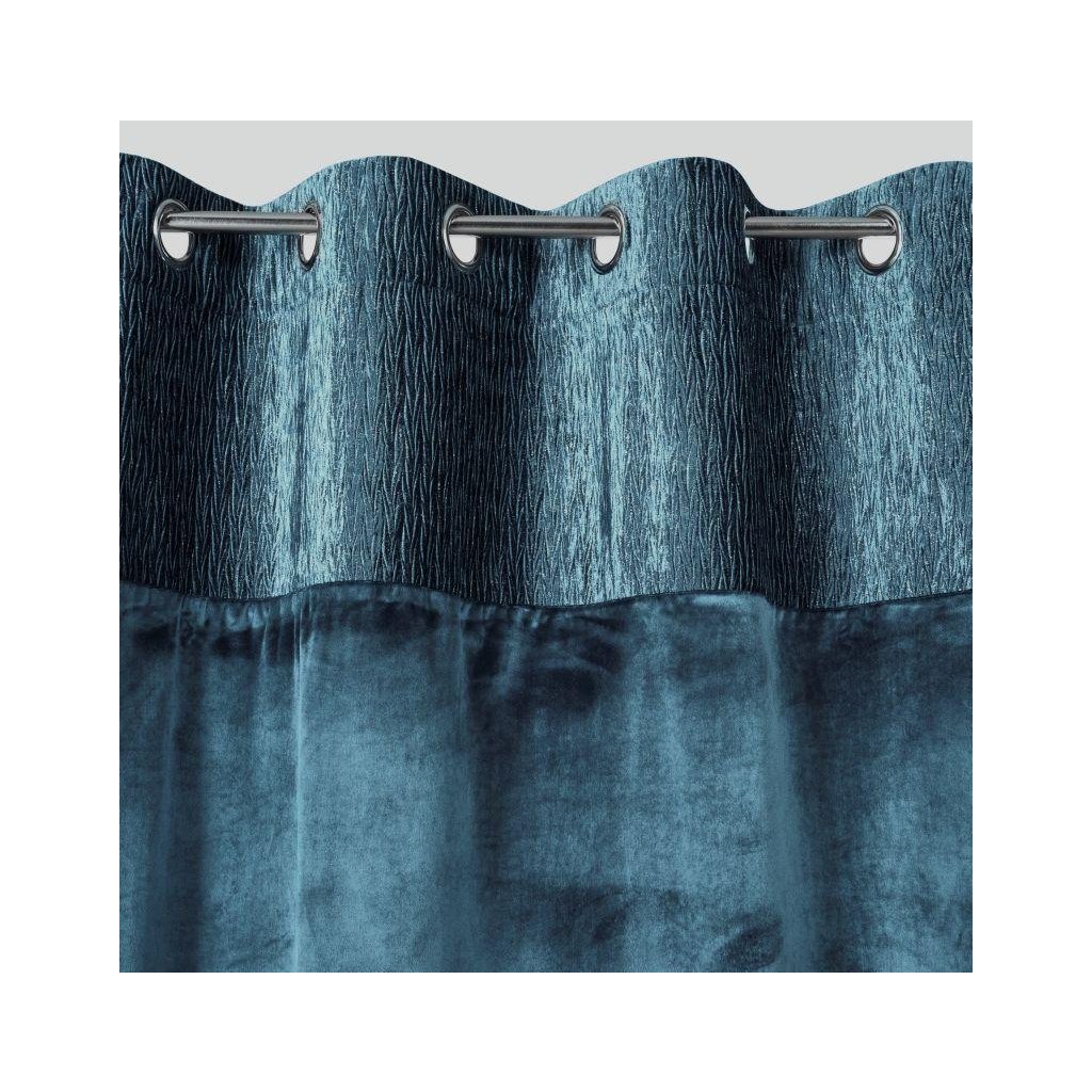 Dekorativní závěs, příjemný na dotek modrošedé barvy je vyroben ze dvou druhů sametu, na vrchní části je ozdoben proužkem se záhyby. Spodní část je hladká. Zajistí vysoké stínění. Šířka 140, délka 250 cm.
