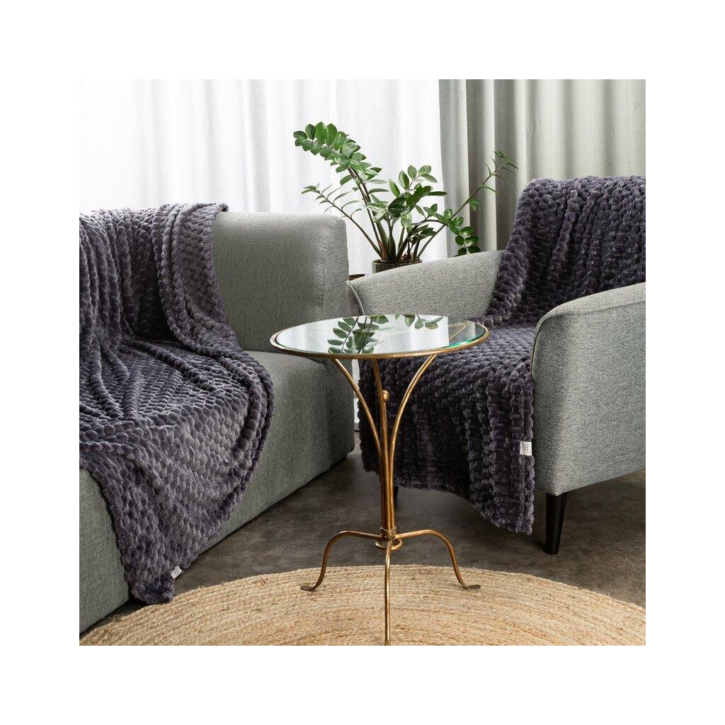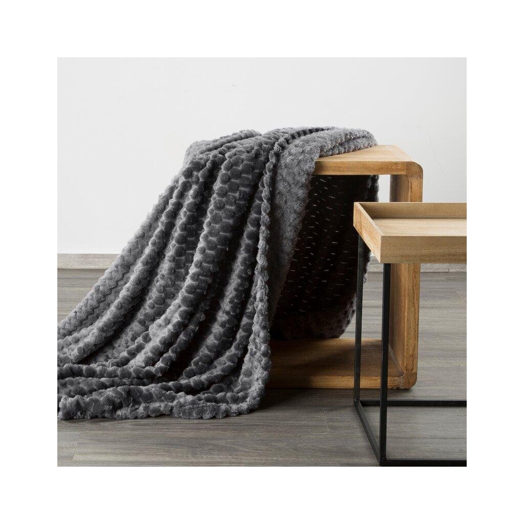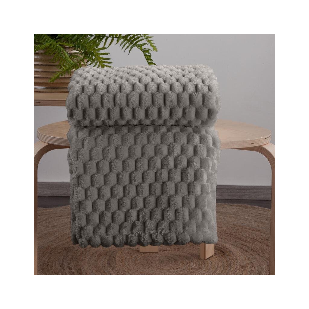 Šedá huňatá deka CINDY6 s 3D vzorem 200x220 cm