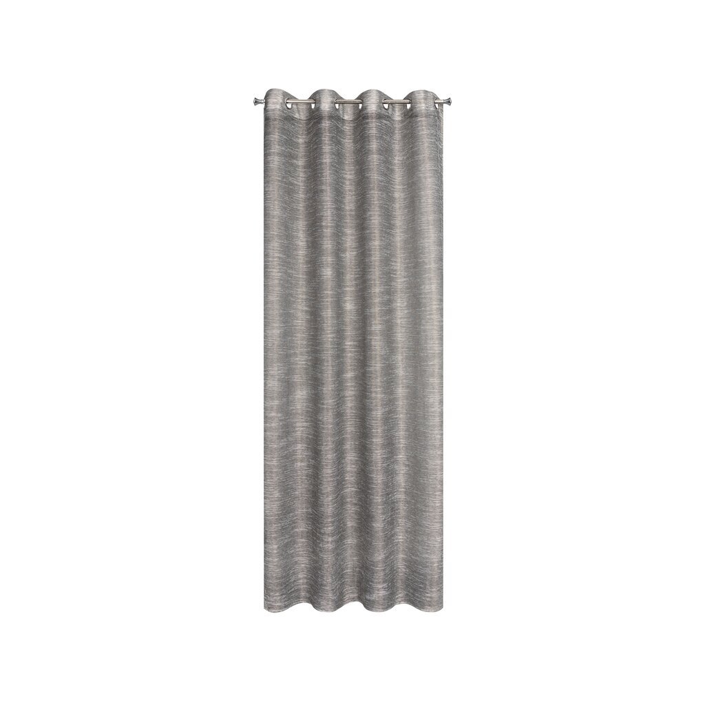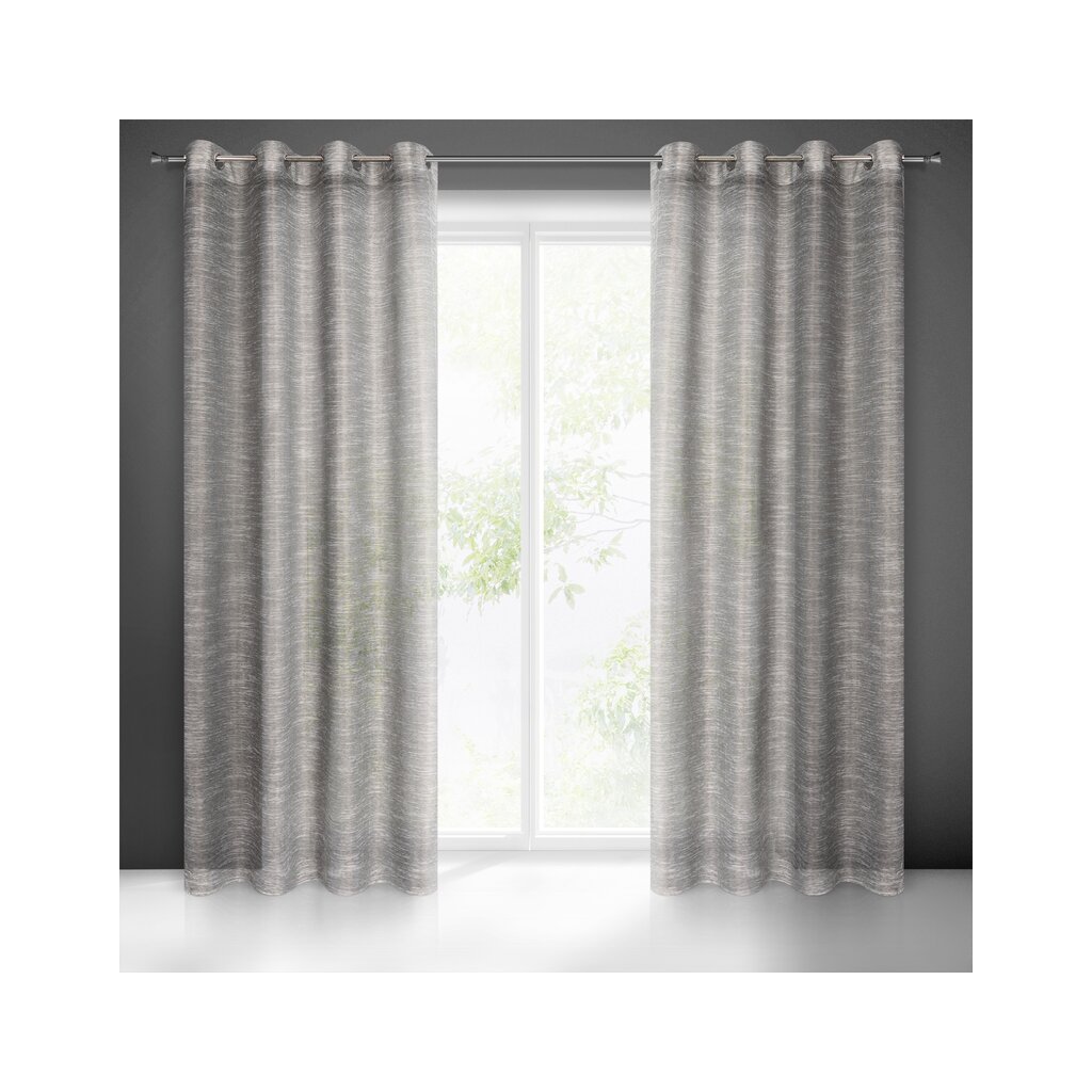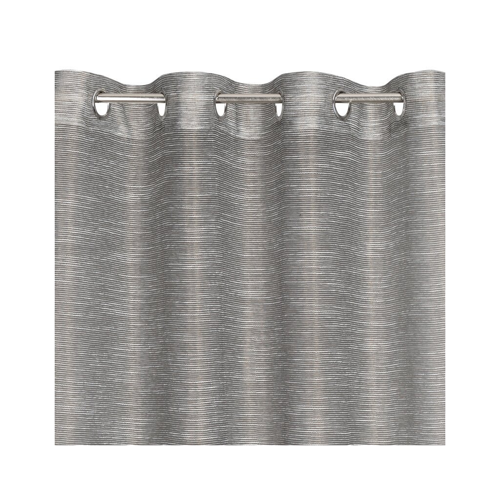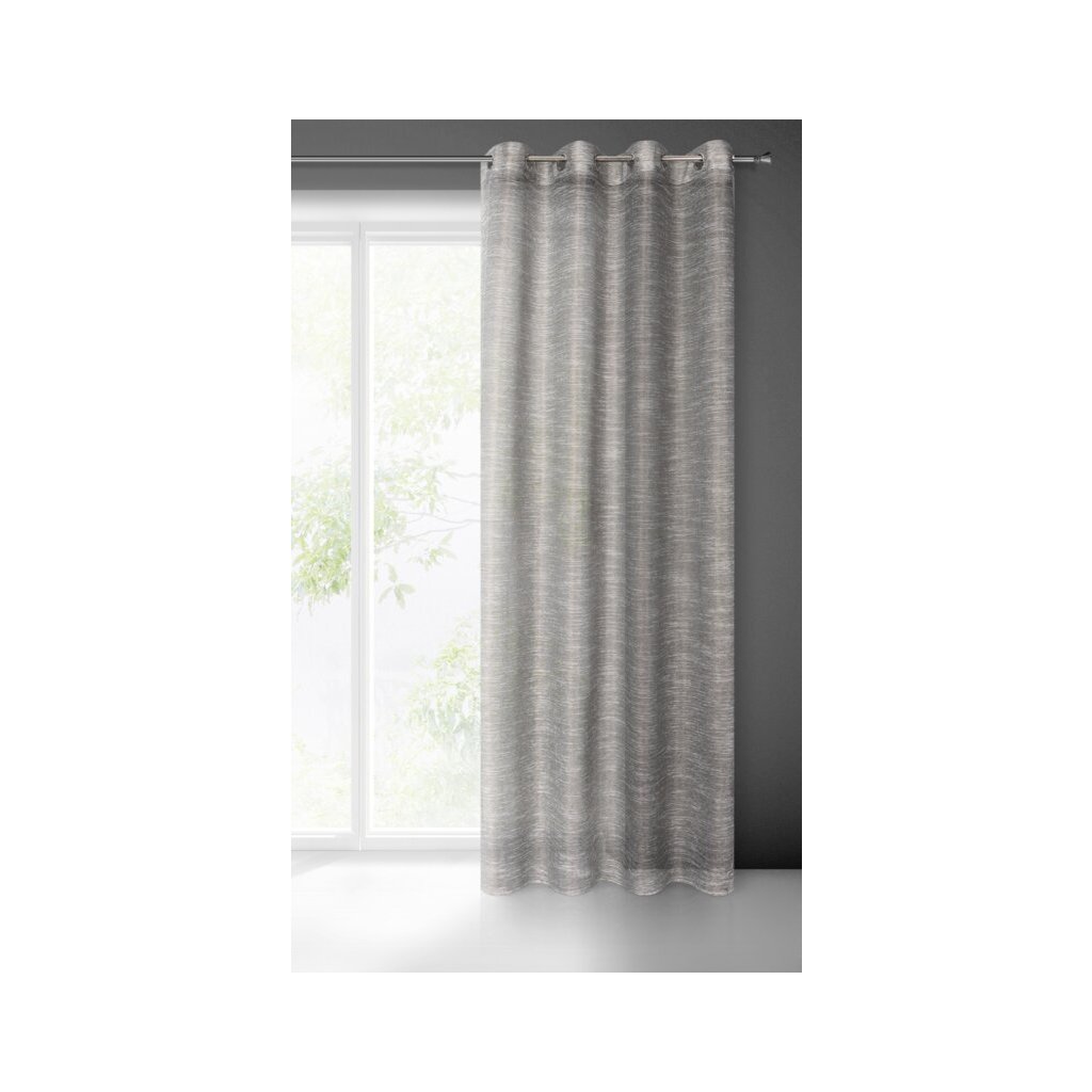 Šedá záclona s jemnými pásky na lesklém podkladu na kroužcích RACHEL 140x250 cm