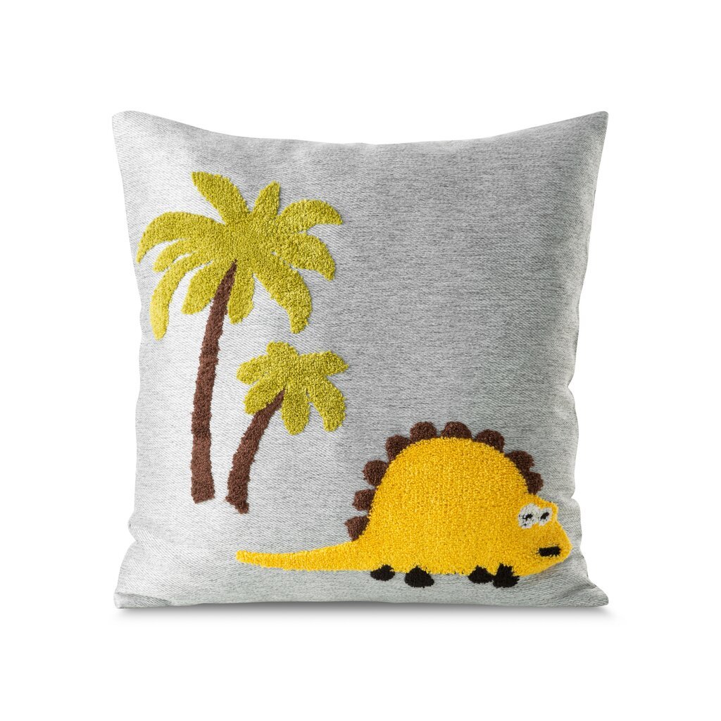 ✅ Povlak s vyšívaným žlutým dinosaurem na šedé melírované tkanině