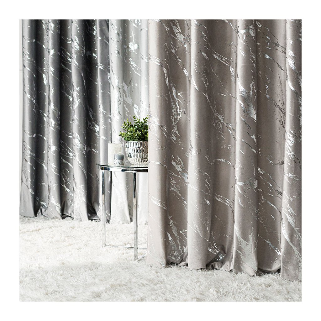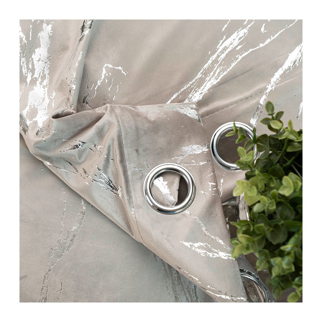 Šedobéžový sametový závěs se stříbrným potiskem na kroužcích MARMA 140x250 cm