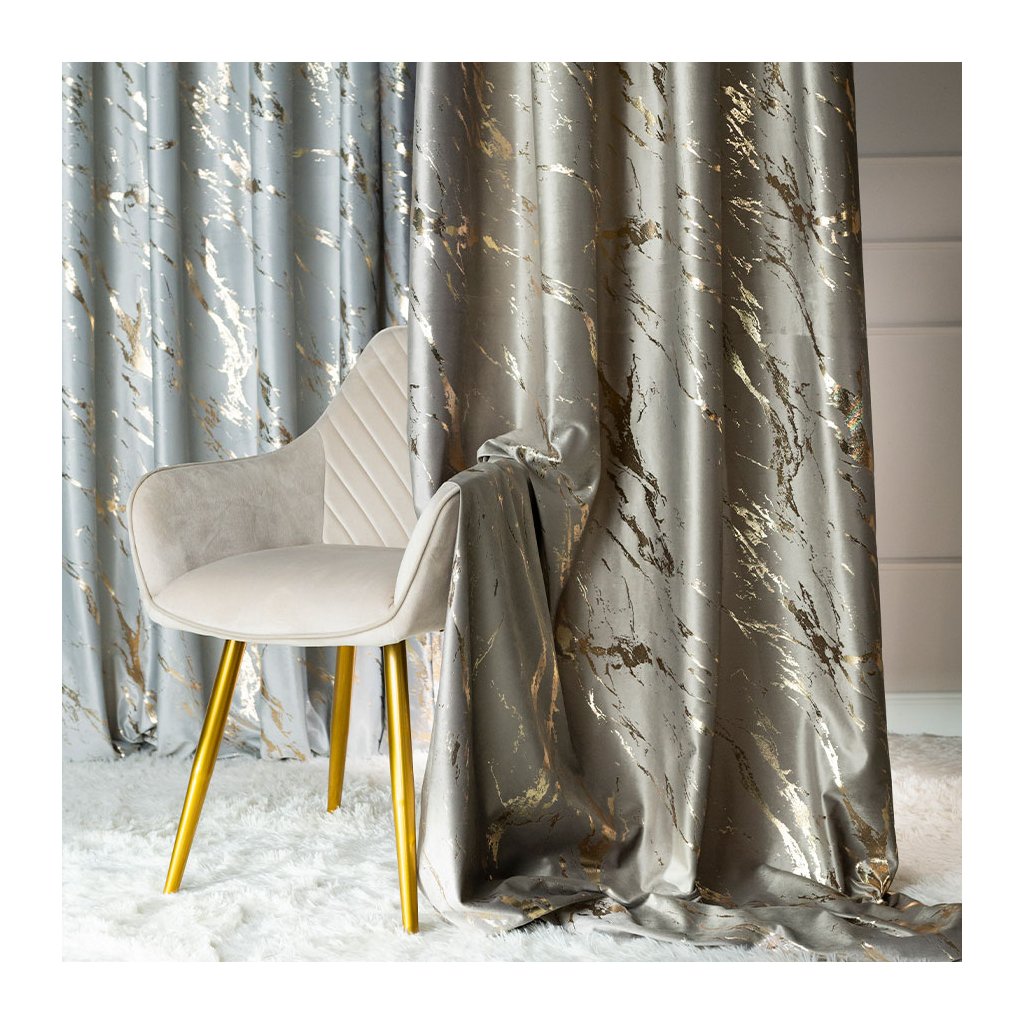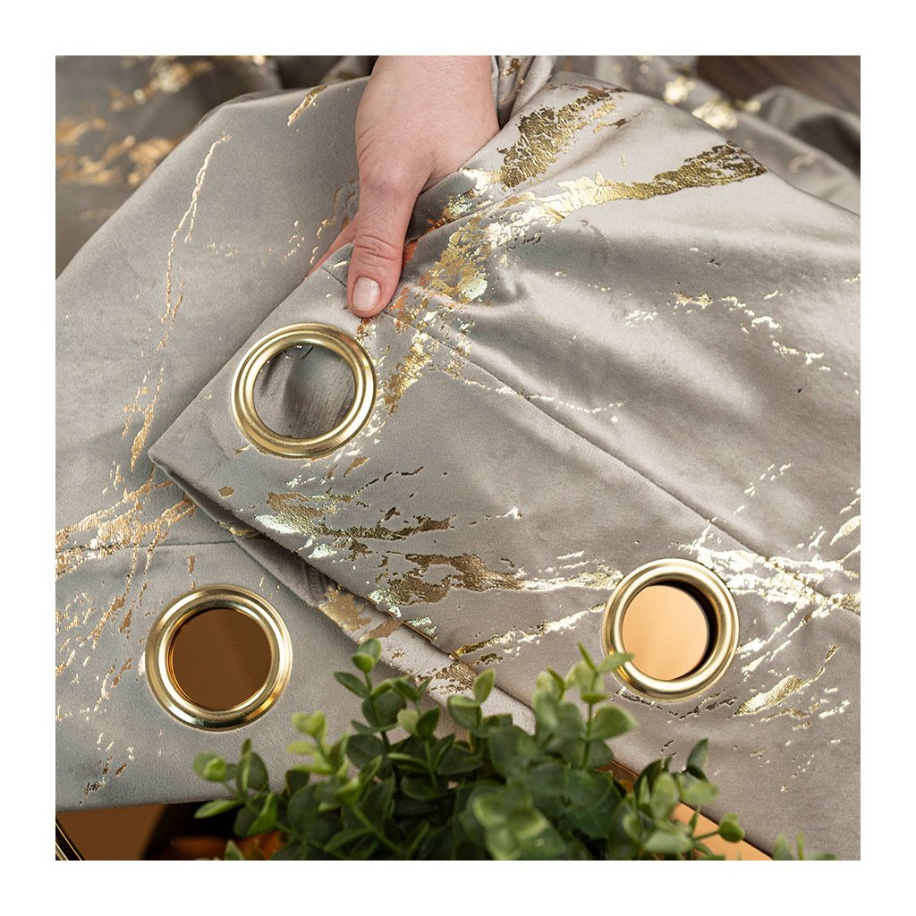 Šedobéžový sametový závěs se zlatým potiskem na kroužcích MARMA 140x250 cm
