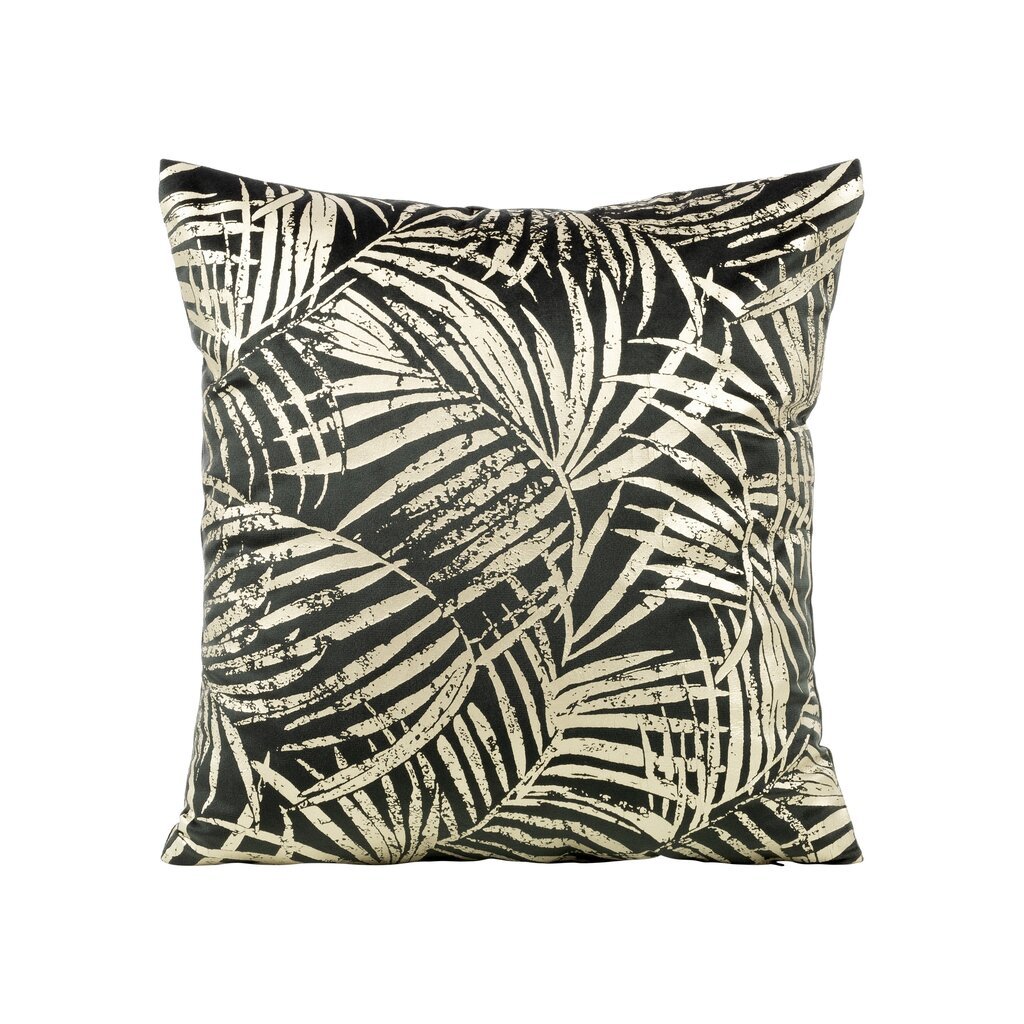 Šedý sametový povlak na polštář se zlatým potiskem botanických listů VERONA 45x45 cm