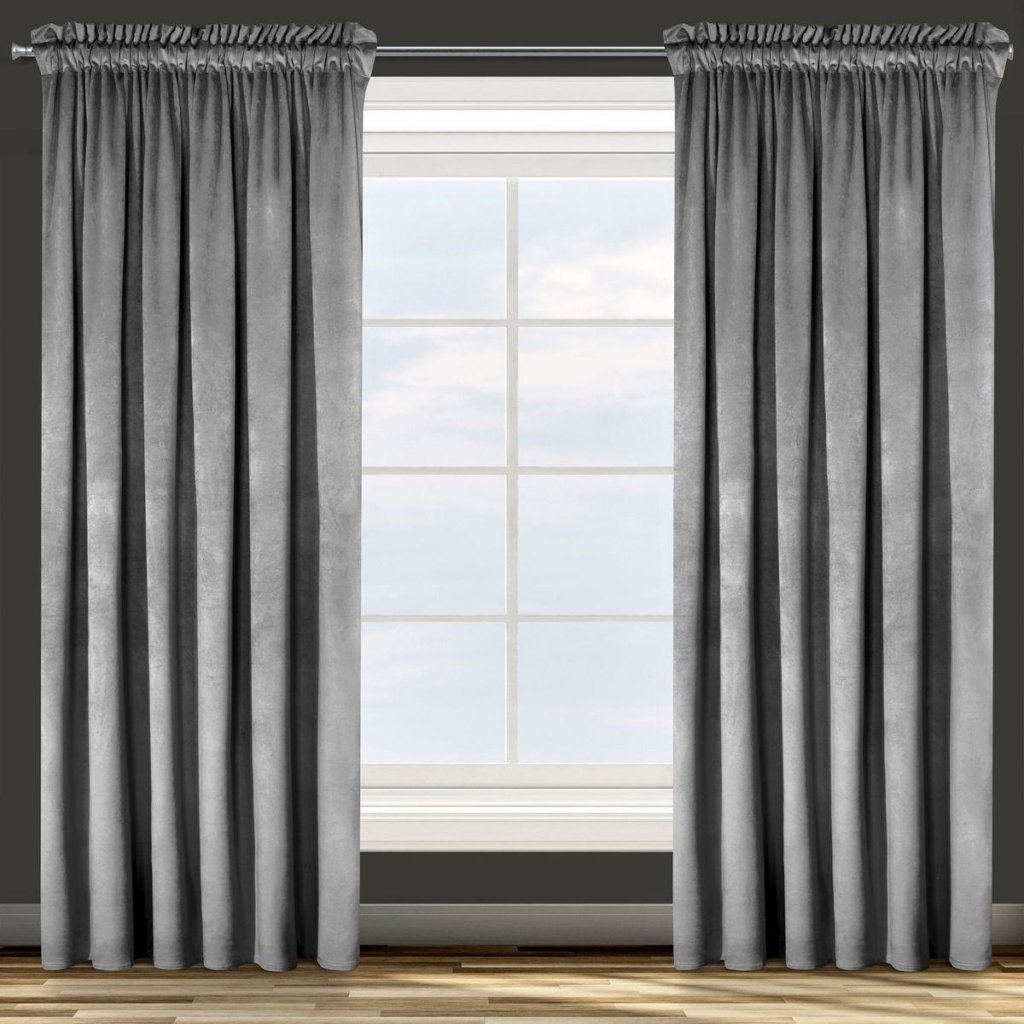 Šedý sametový závěs na pásce ROSA 140x270 cm