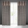Šedý sametový závěs PERI s ozdobným pásem v horní části 140x250 cm