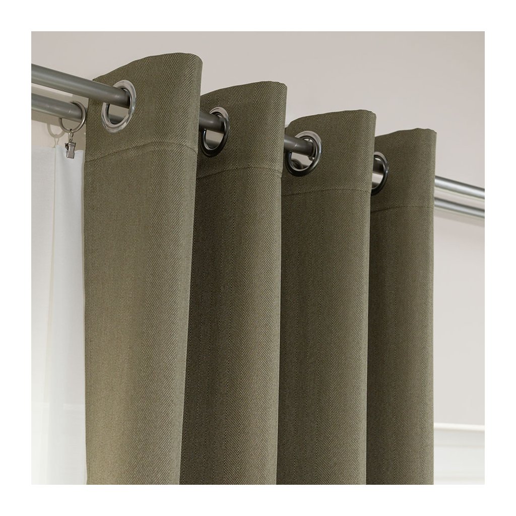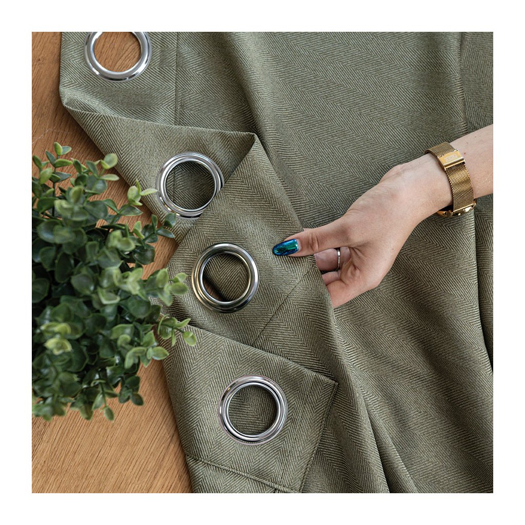 Šivě zelený závěs se vzorem rybí kost na kroužcích JODÍLKA 140x250 cm