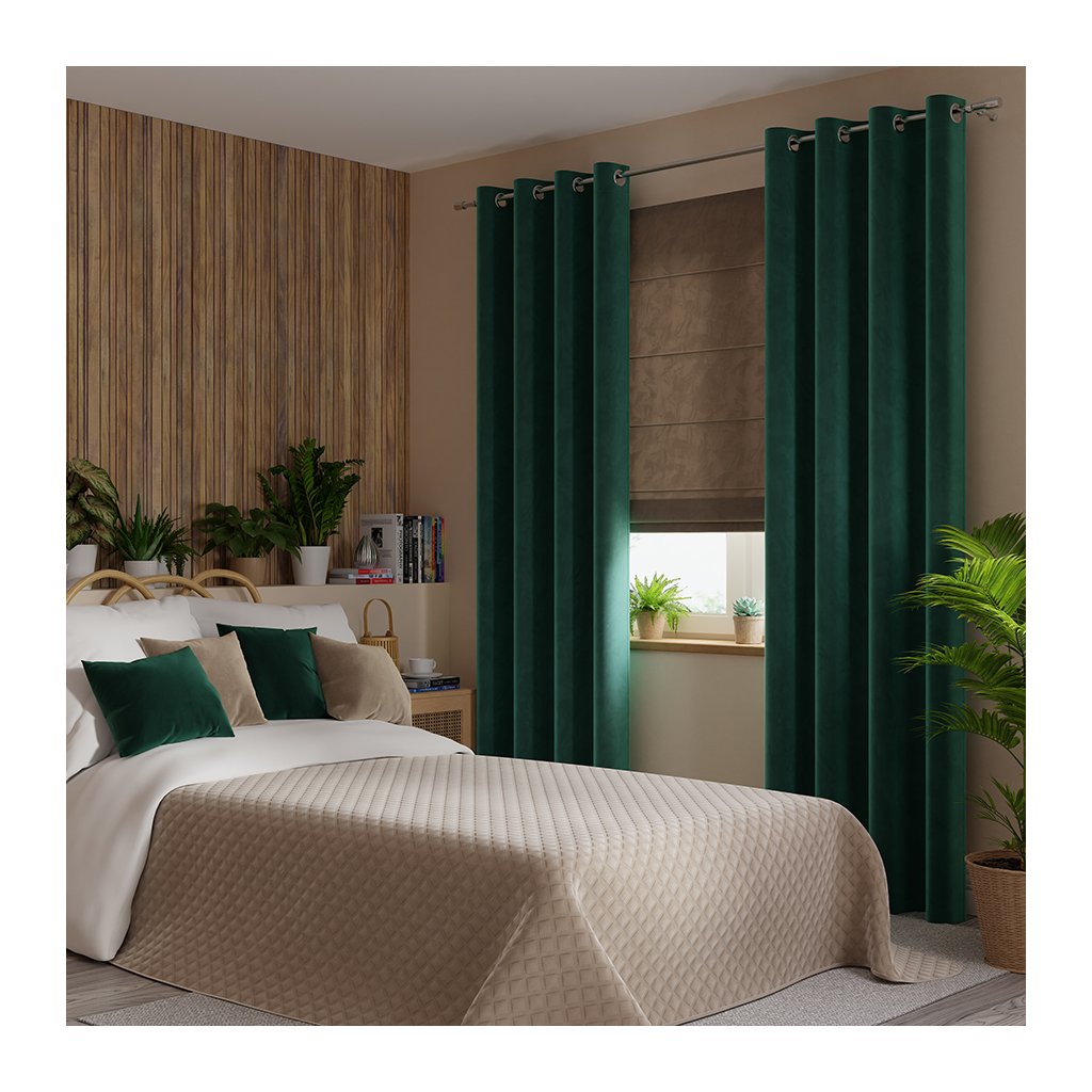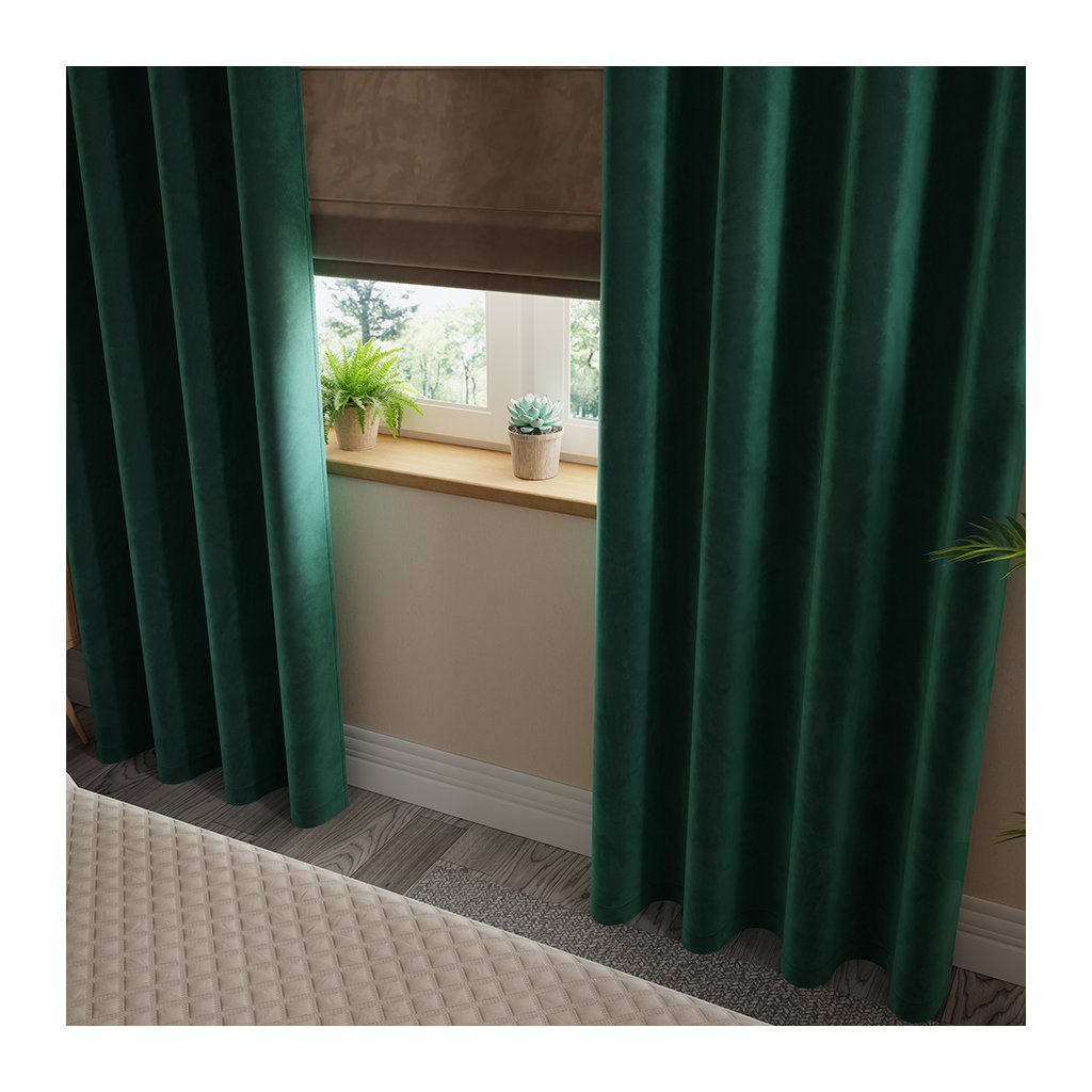 Smaragdový zatemňovací sametový závěs na kroužcích VELVI 140x240