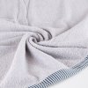 Ručníky jsou vyrobeny ze 100% měkké a velmi savé bavlny s gramáží 450 g/m2, což zajišťuje příjemný kontakt s pokožkou a rychlé vysušení těla. Ozdobná část je tvořena kombinací 95% bavlny a 5% polyesteru, což dodává ručníkům stylový žakárový proužkový vzor.