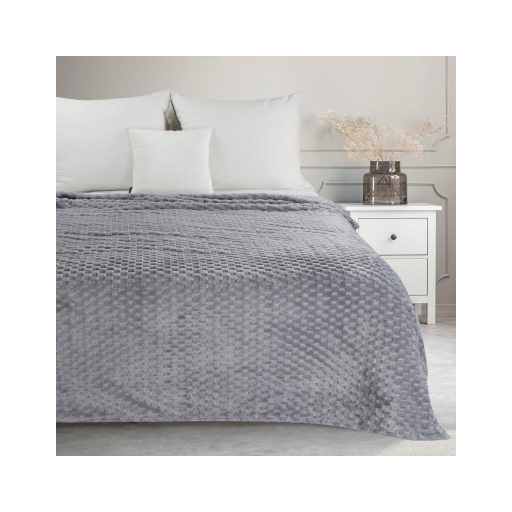 Stříbrná huňatá deka CINDY6 s 3D vzorem 200x220 cm