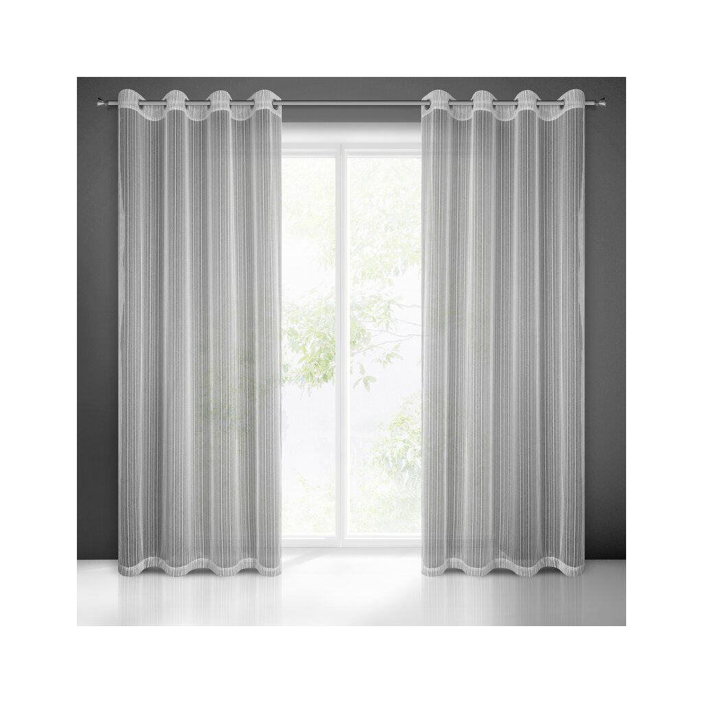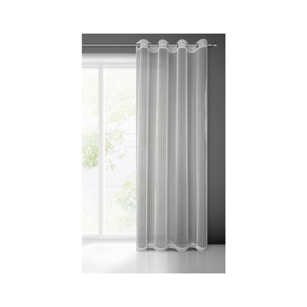 Stříbrná záclona s jemnými proužky na kroužcích NOELIA 140x250 cm