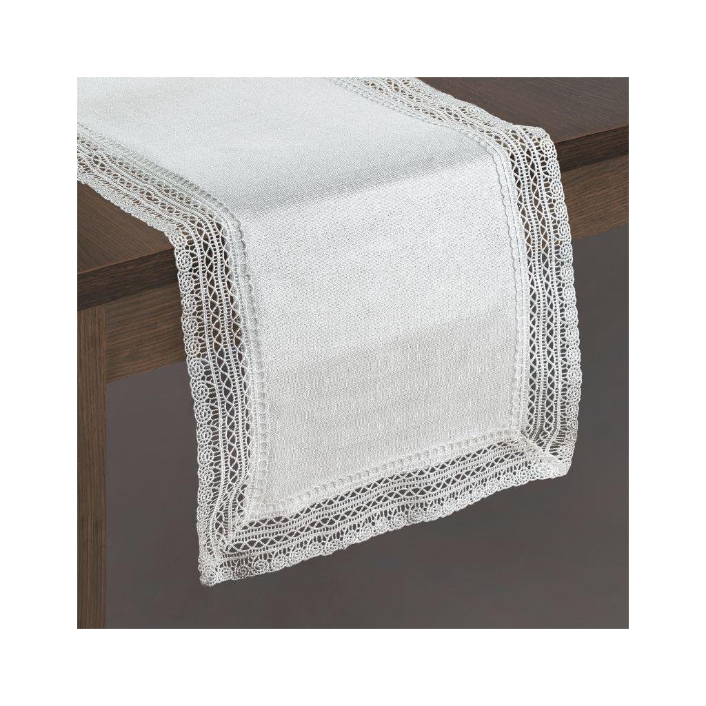 Mimořádně elegantní a zároveň jednoduchý běhoun. Krásné dotvořen jemnou výšivkou s lemem, který mu dodává nadčasový charakter. Bude vypadat skvěle v každém interiéru a bude dokonalým doplňkem slavnostního stolování.