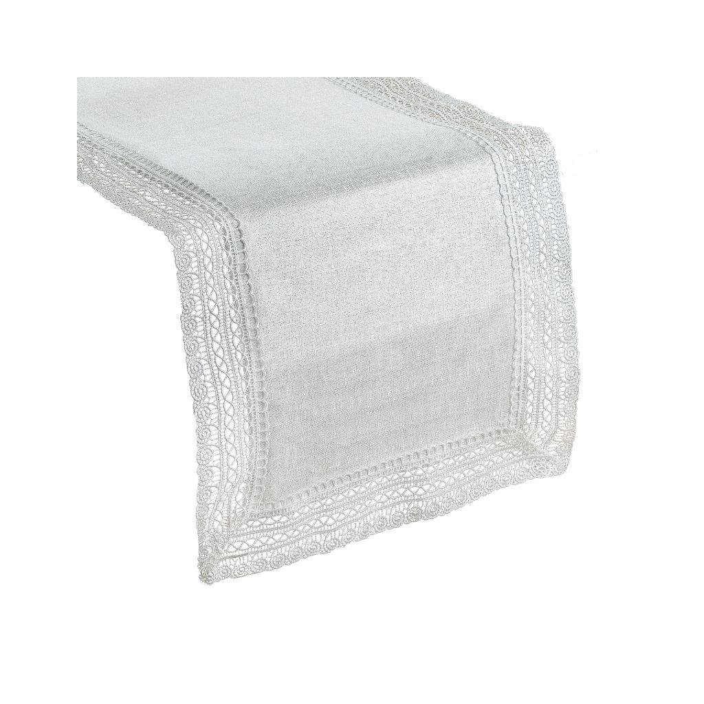 Elegantní látkový běhoun stříbrné barvy s plátnovou vazbou, krásné zakončený jemnou výšivkou s lemem. Vysoce kvalitní látka zaručuje perfektní vlastnosti. Šířka: 35 cm, délka: 180 cm. Složení: 100% polyester