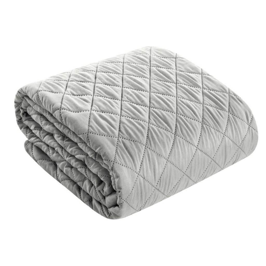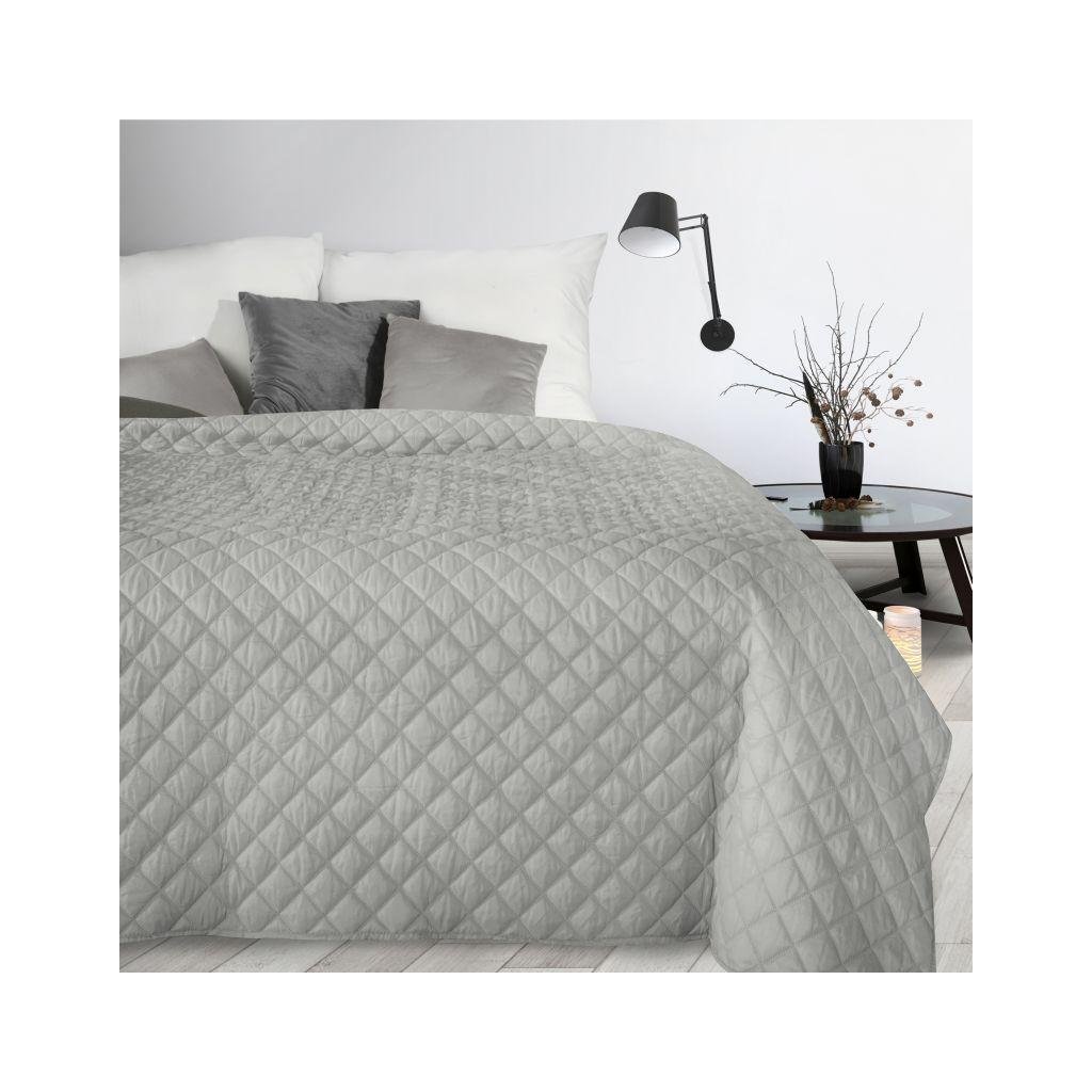Přehoz na postel ALARA3 stříbrné barvy s geometrickým vzorem vyraženým metodou hotpress. Lze prát v pračce. 220x240 cm