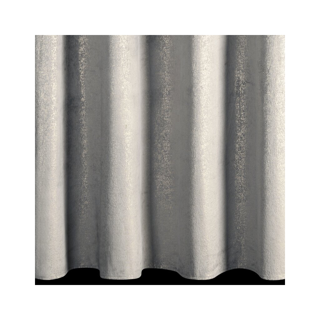 Stříbrný sametový závěs se zlatým potiskem na kroužcích BETHY 135x250 cm
