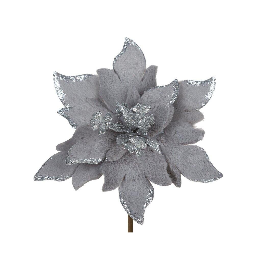 Stříbrný vánoční květ na stromeček 28x28x15 cm - sada 12 ks