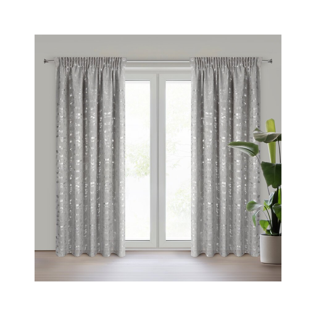 Stříbrný závěs s příměsí lnu na pásce INES 140x270 cm