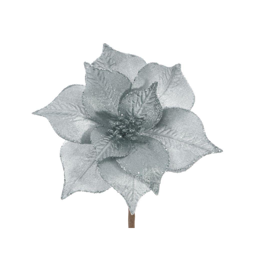 Stříbrný vánoční květ na stromeček 20 cm - sada 12 ks